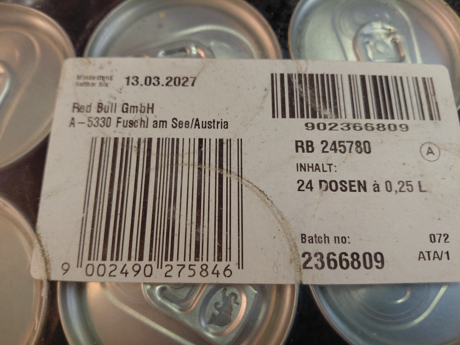 24 Dosen a 0,25 l MHD 13.03.2027 inkl. Pfandgebühr