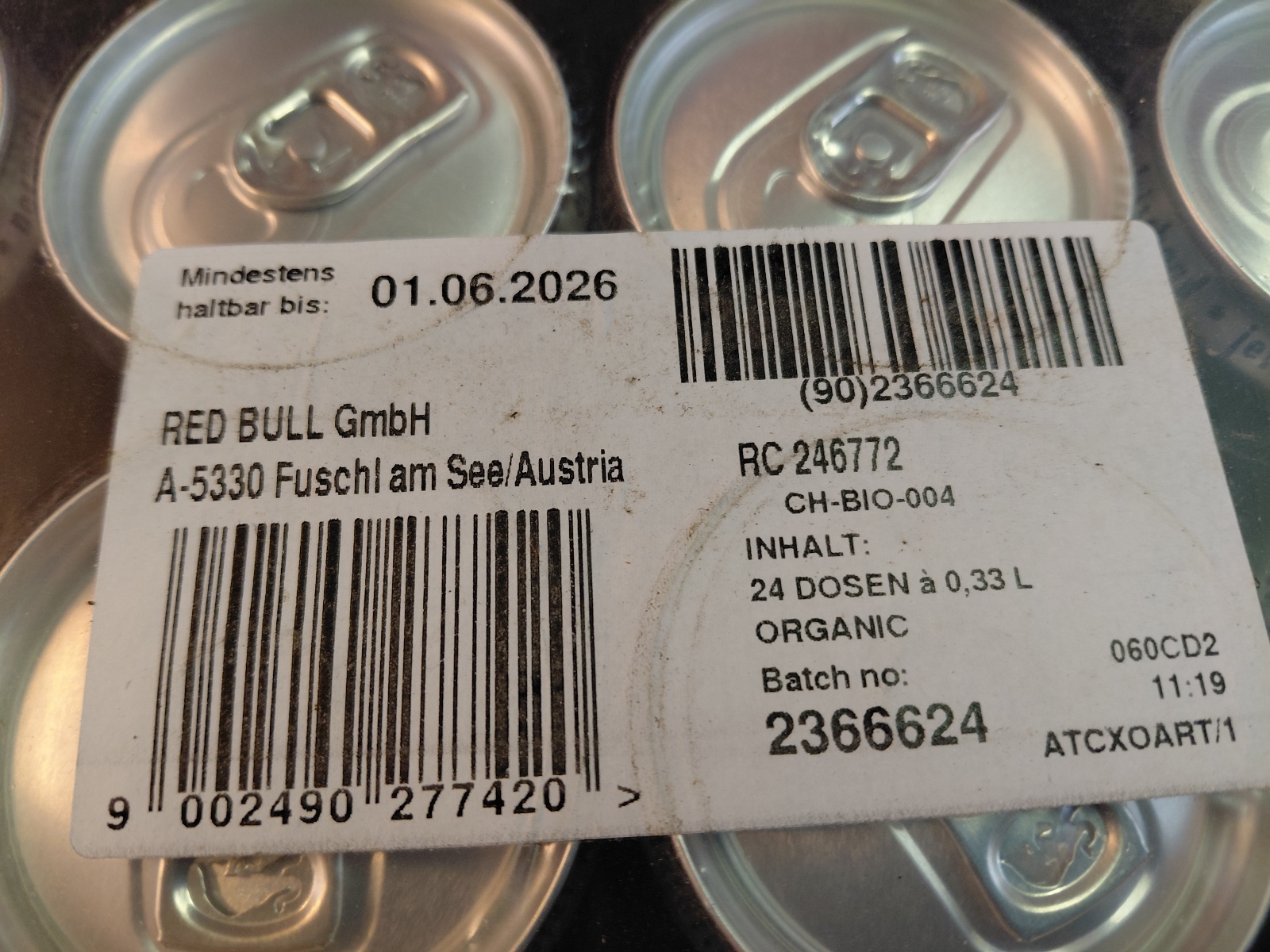 24 Dosen a 0,33 l MHD 01.06.2026 inkl. Pfandgebühr