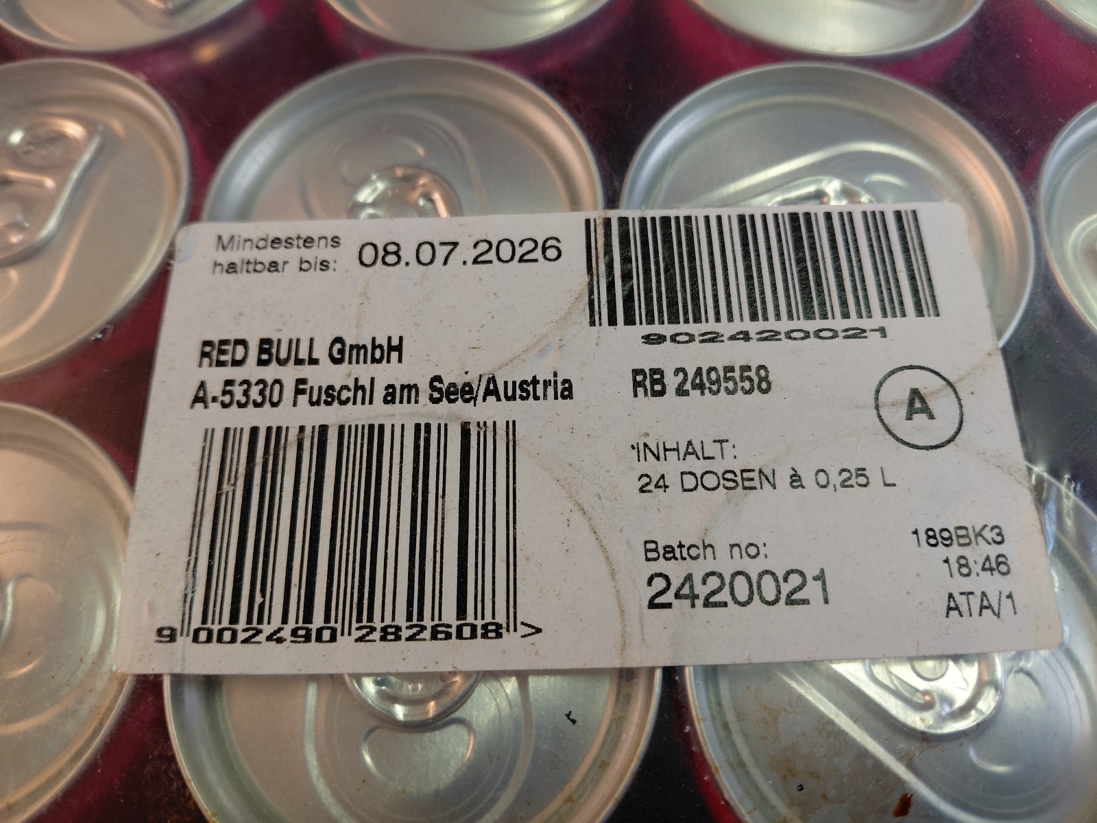 24 Dosen a 0,25 l, MHD 08.07.2026, inkl. Pfandgebühr