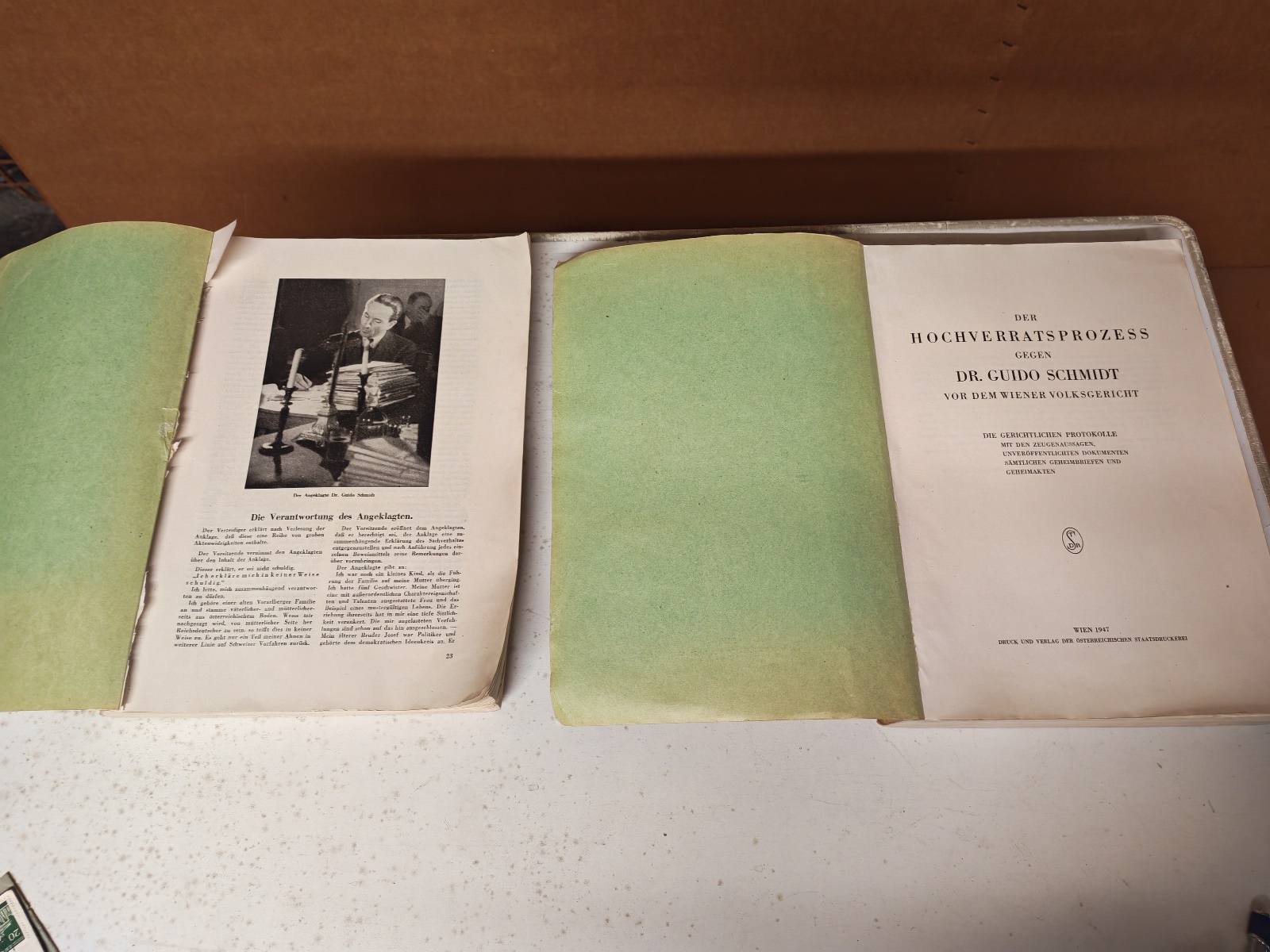 gegen Dr. Guido Schmidt, Außenminister der Republik Österreich von 1936-1938, 2 idente Bände, allerdings fehlen in einem Band die ersten 22 Seiten, siehe Foto