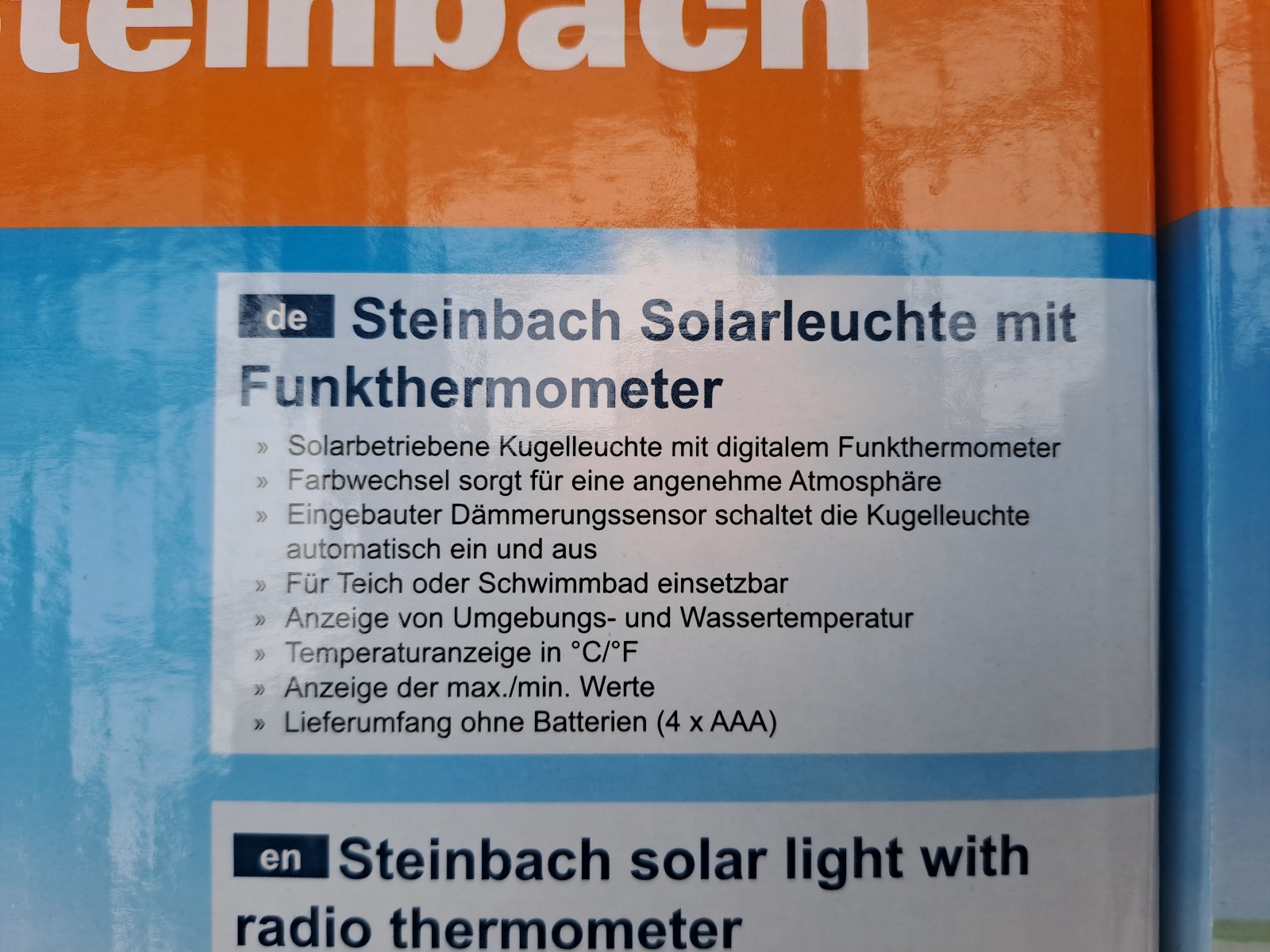 Neupreis je 33,99 Euro Solarleuchte mit Funkthermometer, Farbwechsel, Dämmerungssensor, einsetzbar für Pools und Teiche, Neuware, OVP