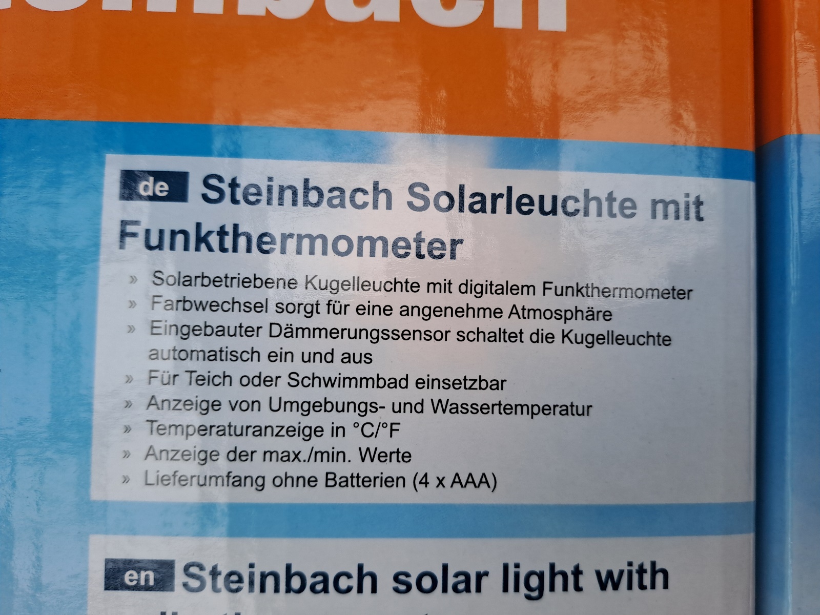Neupreis je 33,99 Euro Solarleuchte mit Funkthermometer, Farbwechsel, Dämmerungssensor, einsetzbar für Pools und Teiche, Neuware, OVP