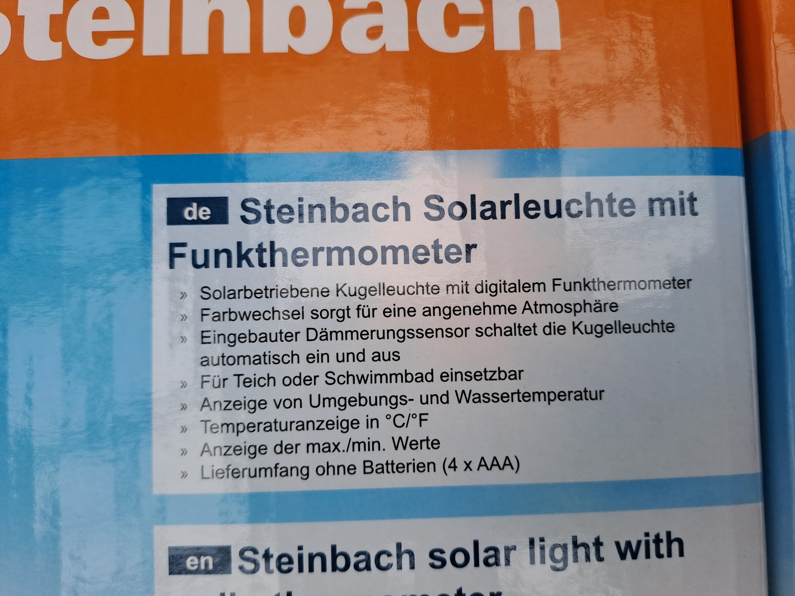 Neupreis je 33,99 Euro Solarleuchte mit Funkthermometer, Farbwechsel, Dämmerungssensor, einsetzbar für Pools und Teiche, Neuware, OVP