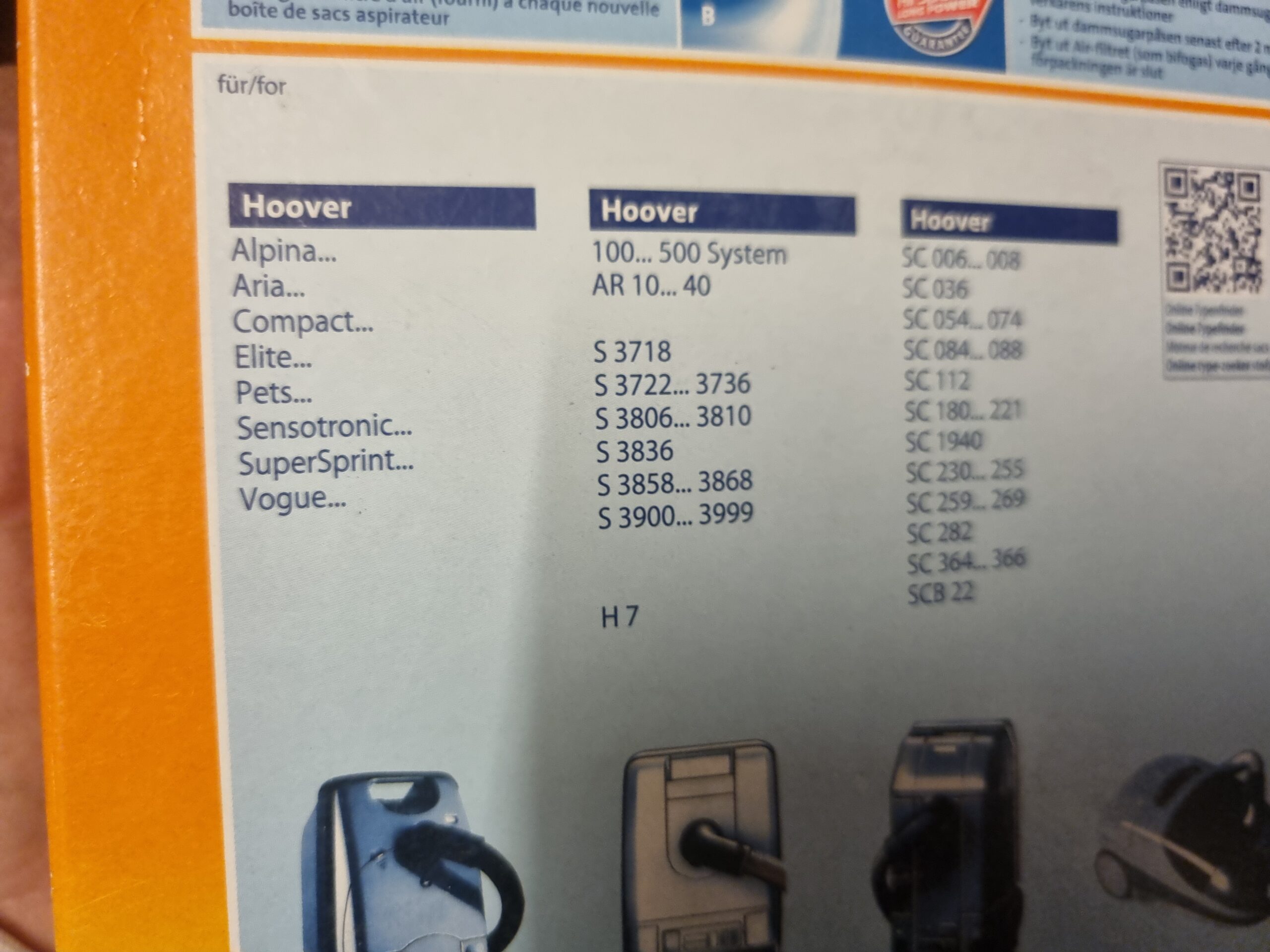 3 Staubsaugerbeutel H32 Hoover