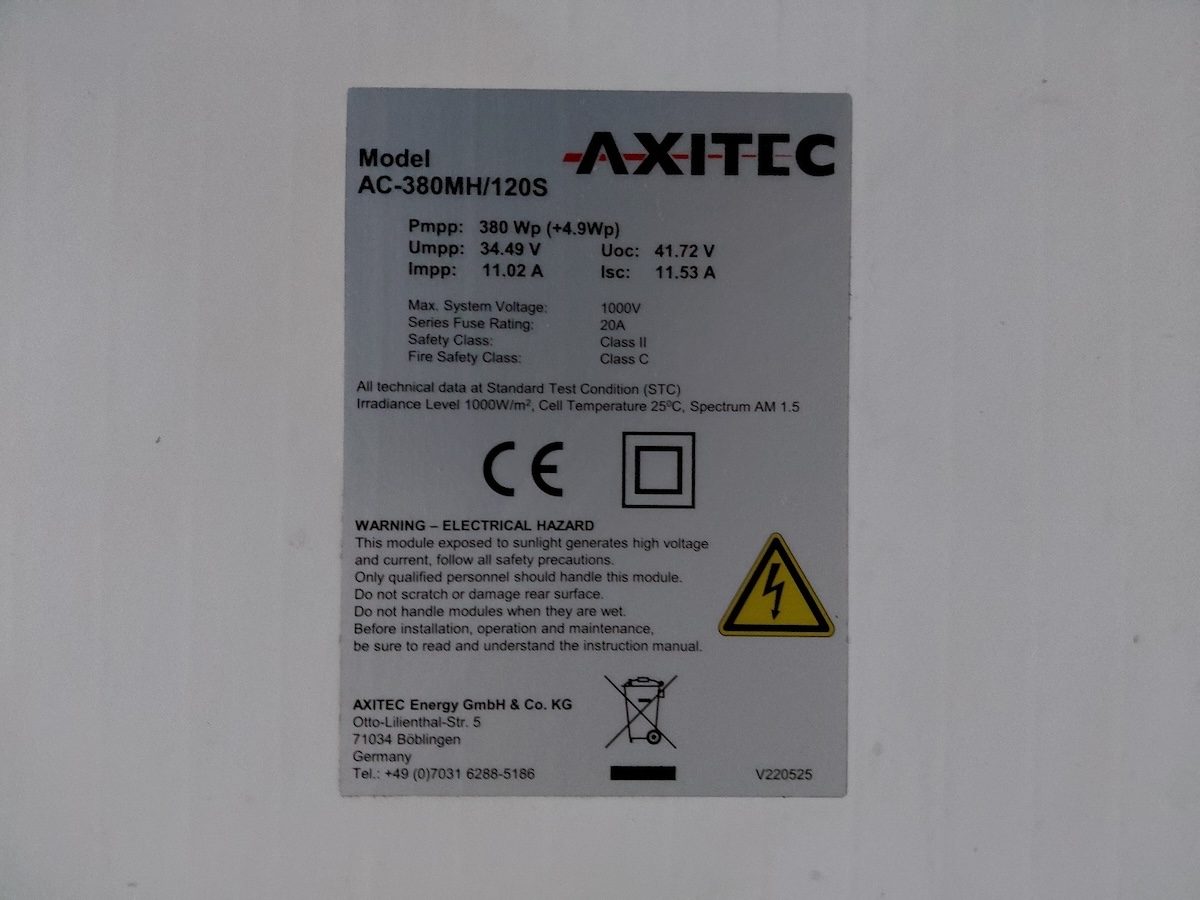 Modelle AC-380 MH/120S, 380 Wp, insgesamt 7 Stk., siehe Typenschilder und Fotos