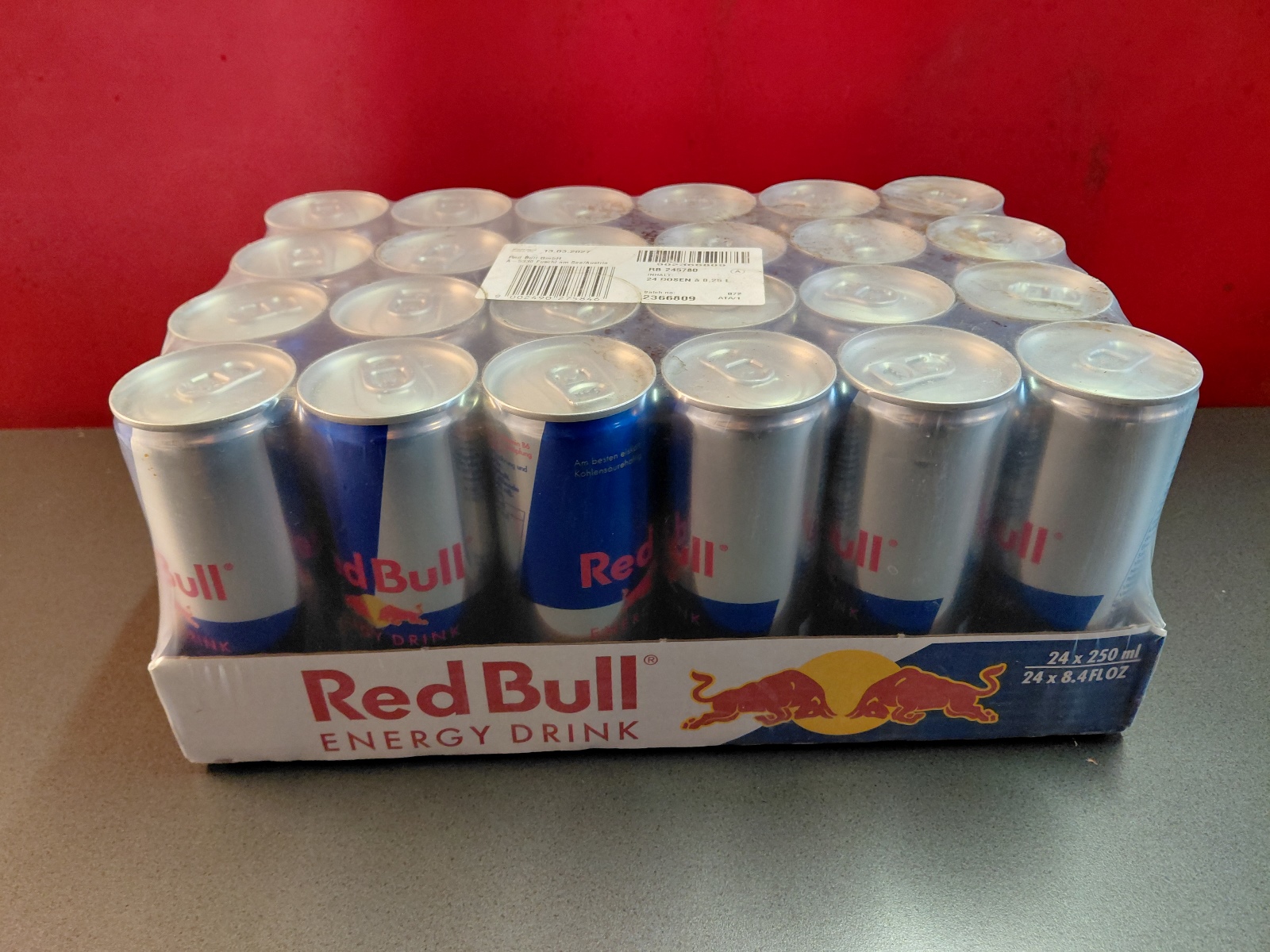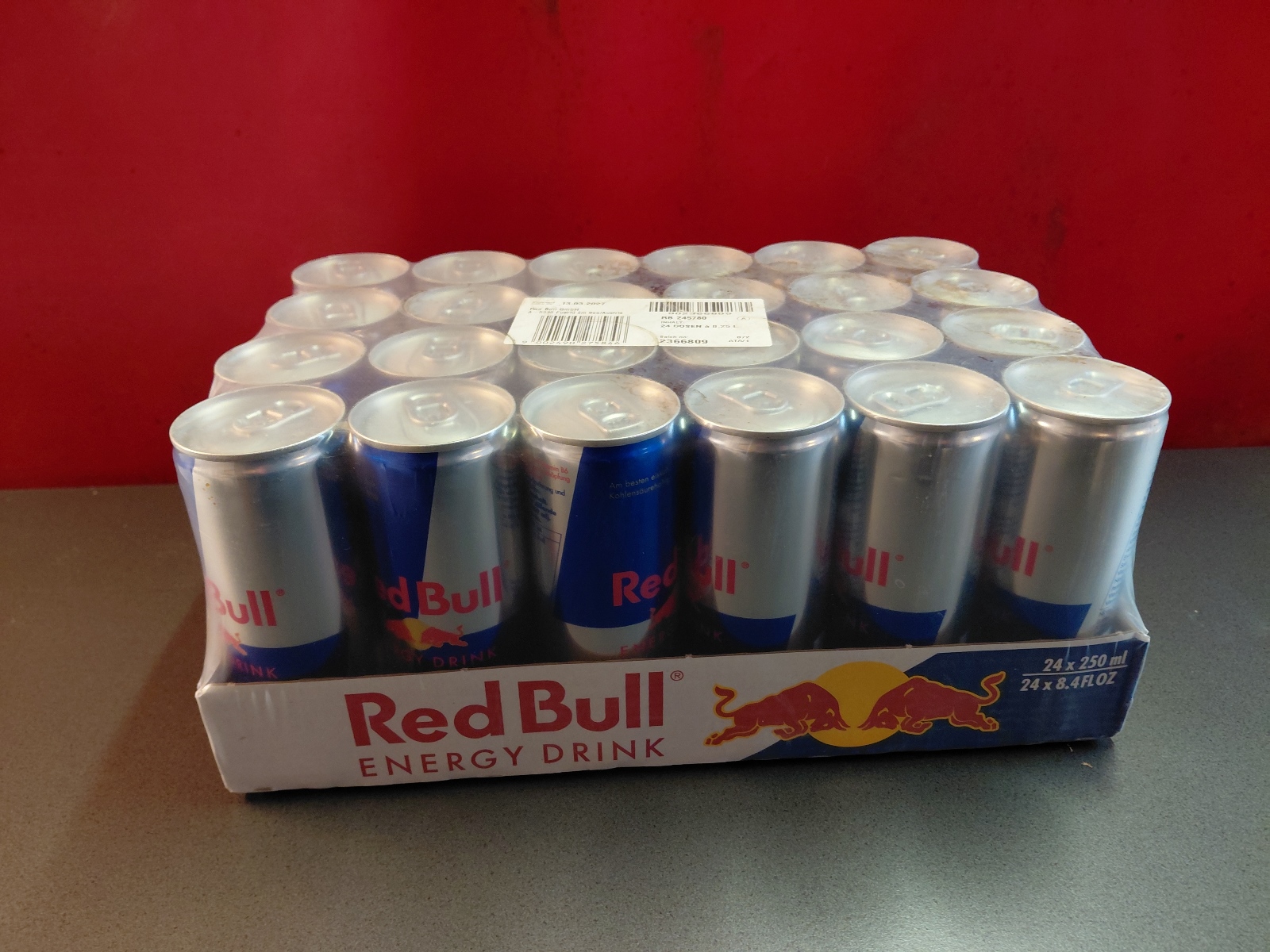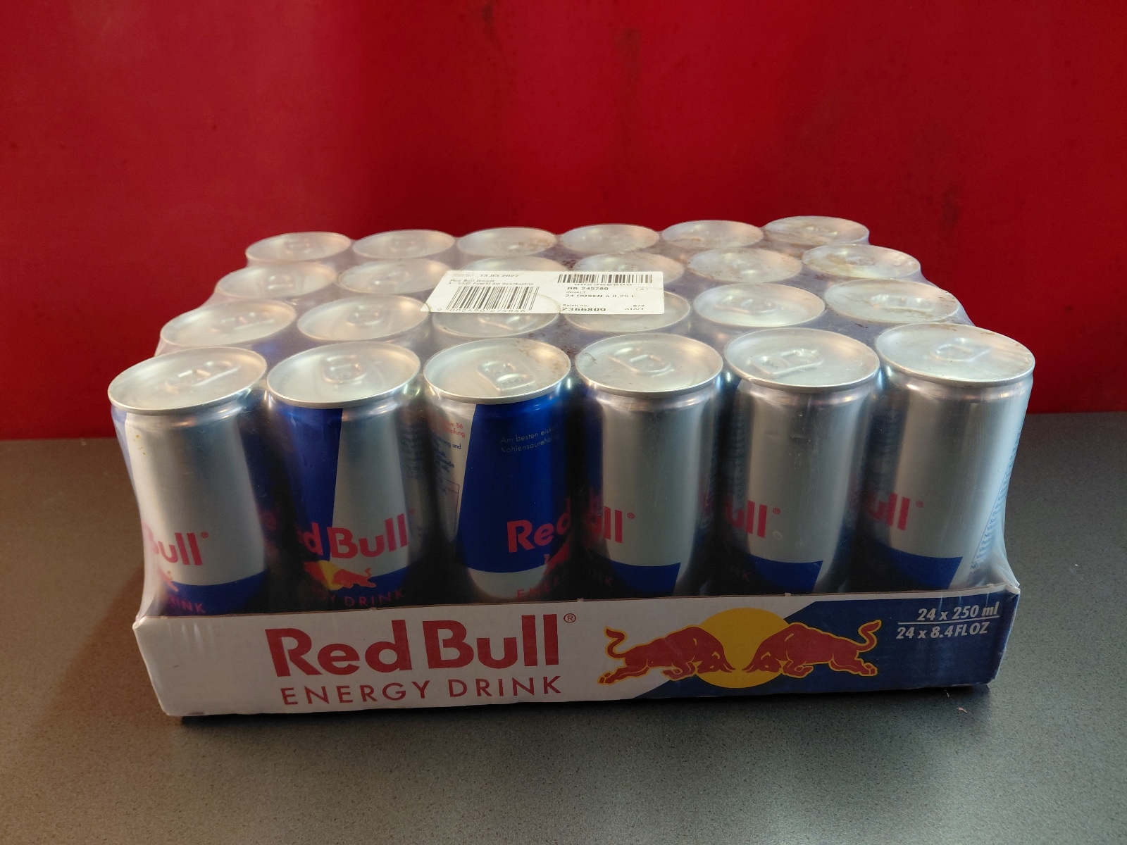 Red Bull, Red Bull Organics Cola und Fizzy Peach, Rauch Eistee, Gasteiner Mineralwasser prickelnd und still, Gasteiner Infinity Water Lemon und Apfel, sowie Himber-Zitrone und Holunder-Limette, abgepackt in Trays zu je 12 bzw. 24 Dosen oder Petflaschen mit Inhalten von 0,25-0,5 l, inklusive Pfandgebühr