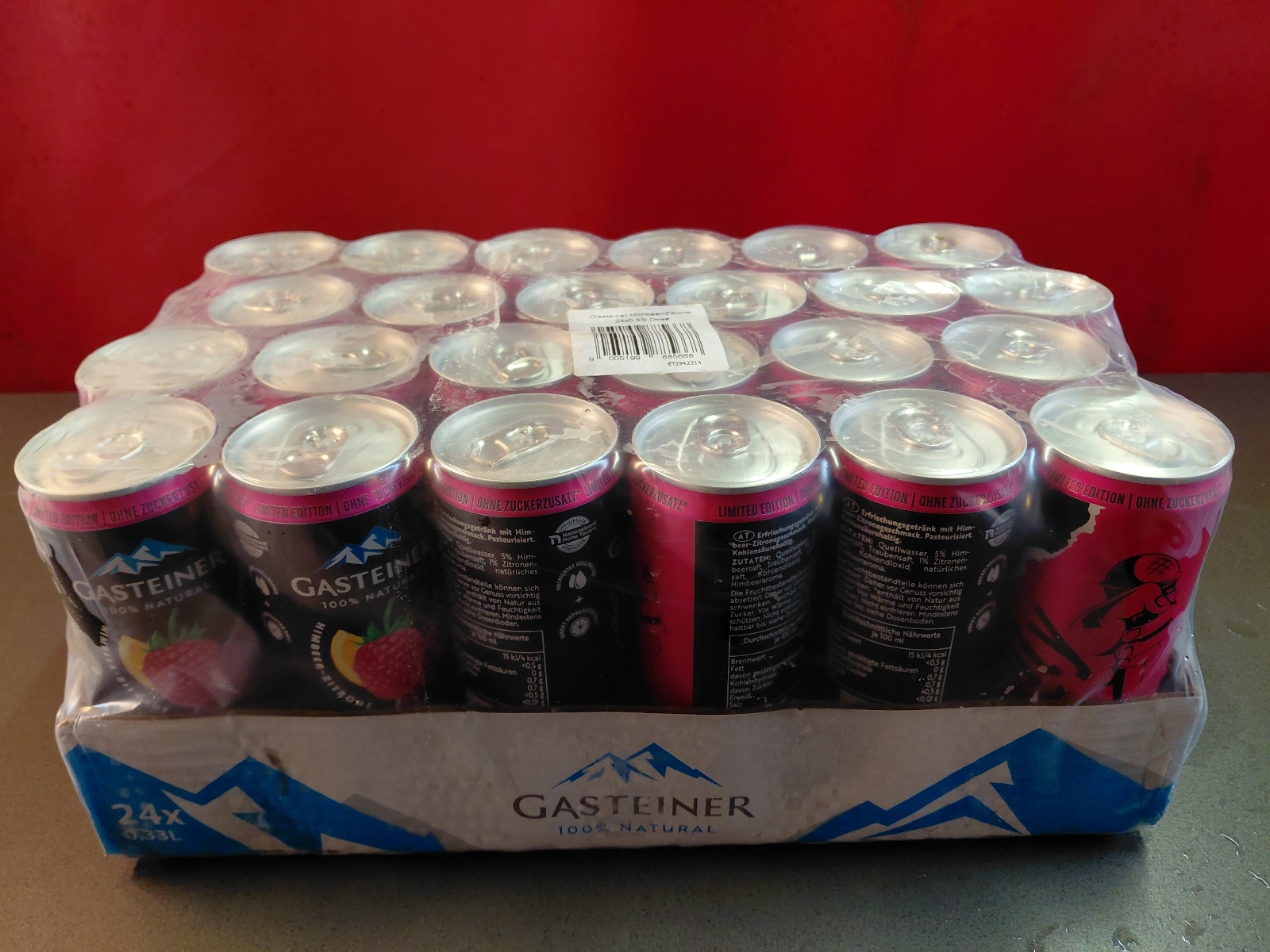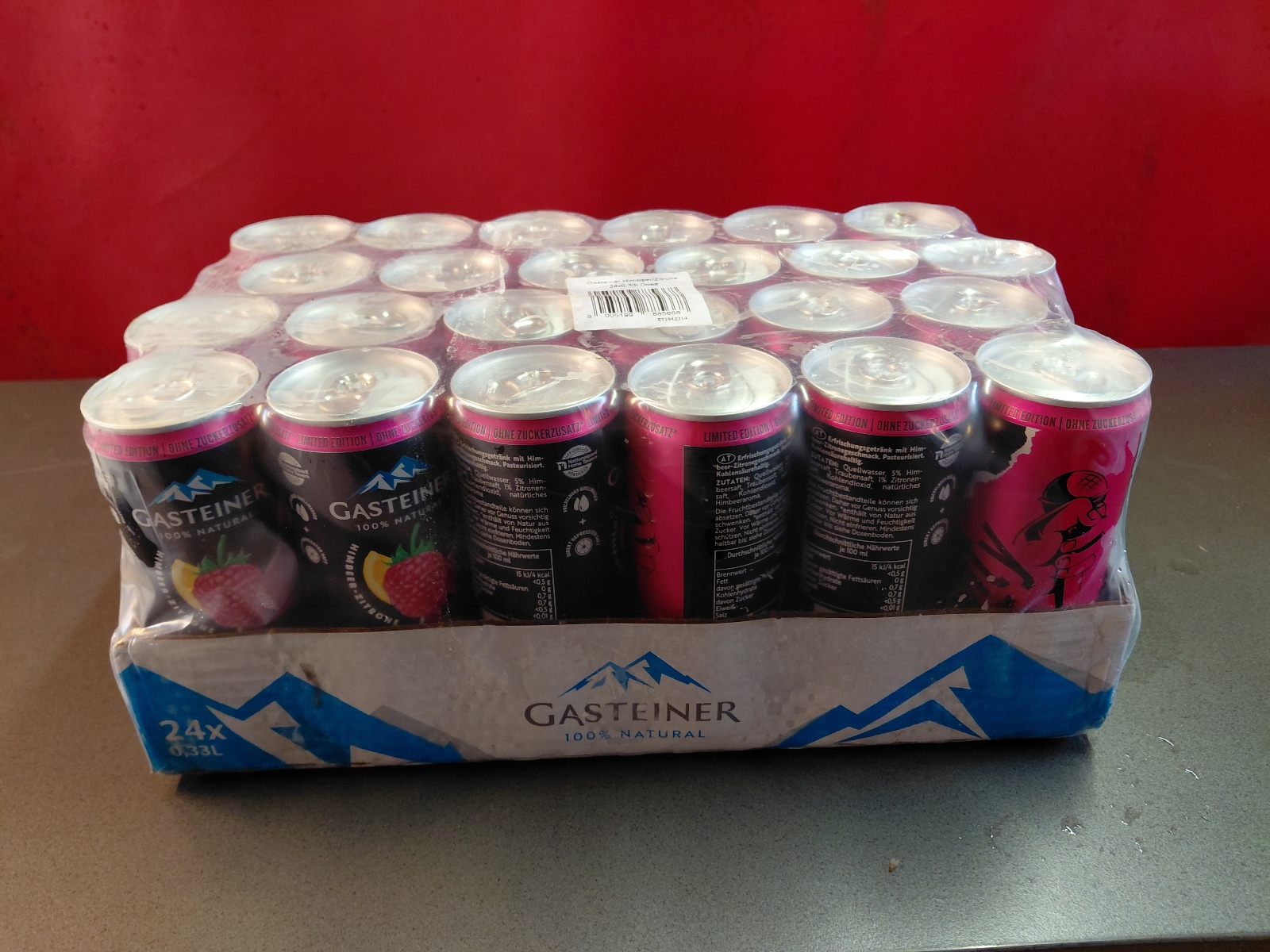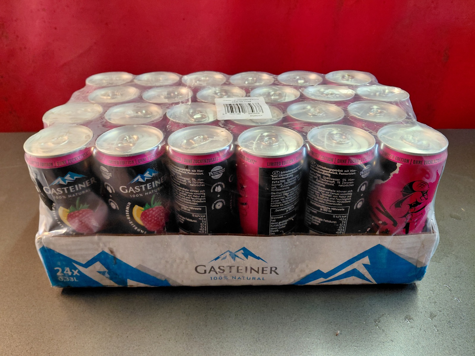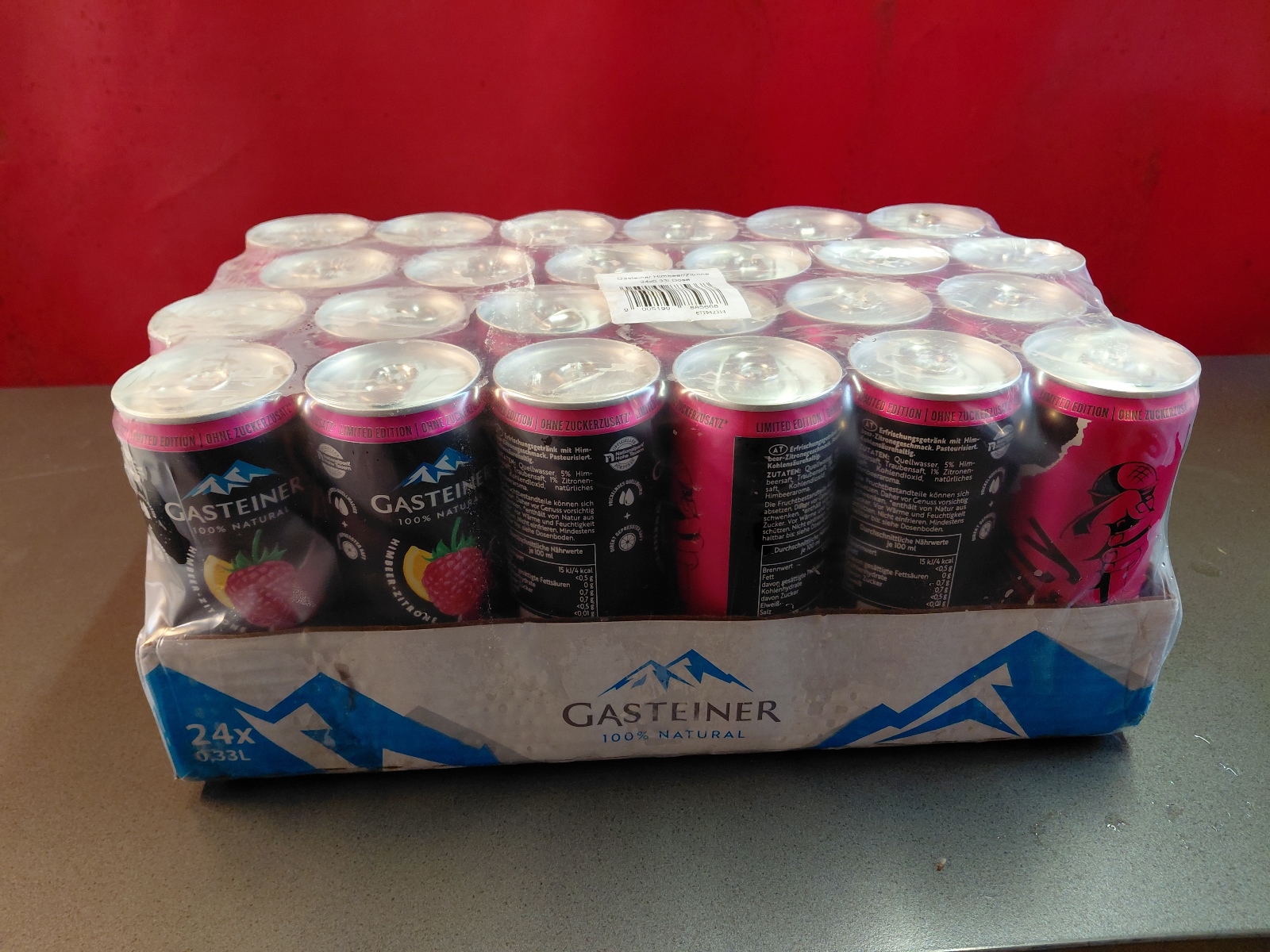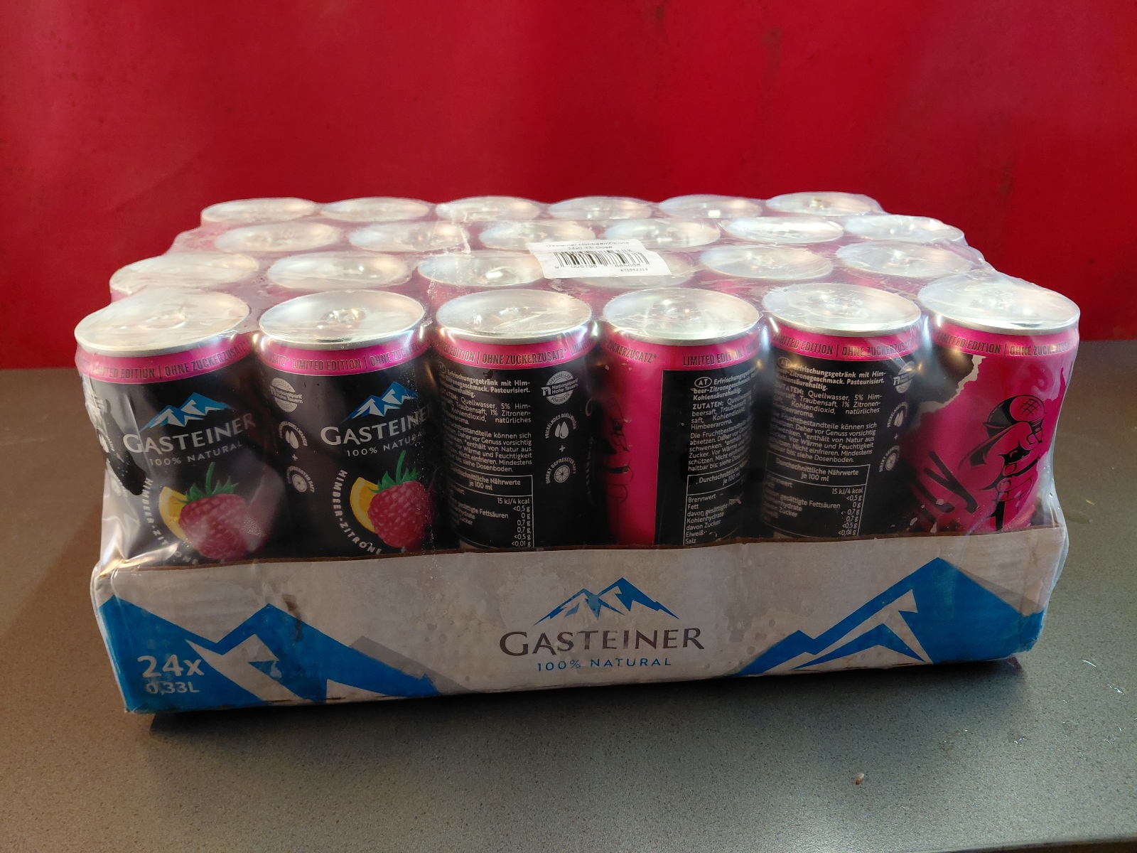 Red Bull, Red Bull Organics Cola und Fizzy Peach, Gasteiner Mineralwasser prickelnd und still, Gasteiner Infinity Water, Lemon und Apfel, sowie Himbeer-Zitrone und Holunder-Limette,