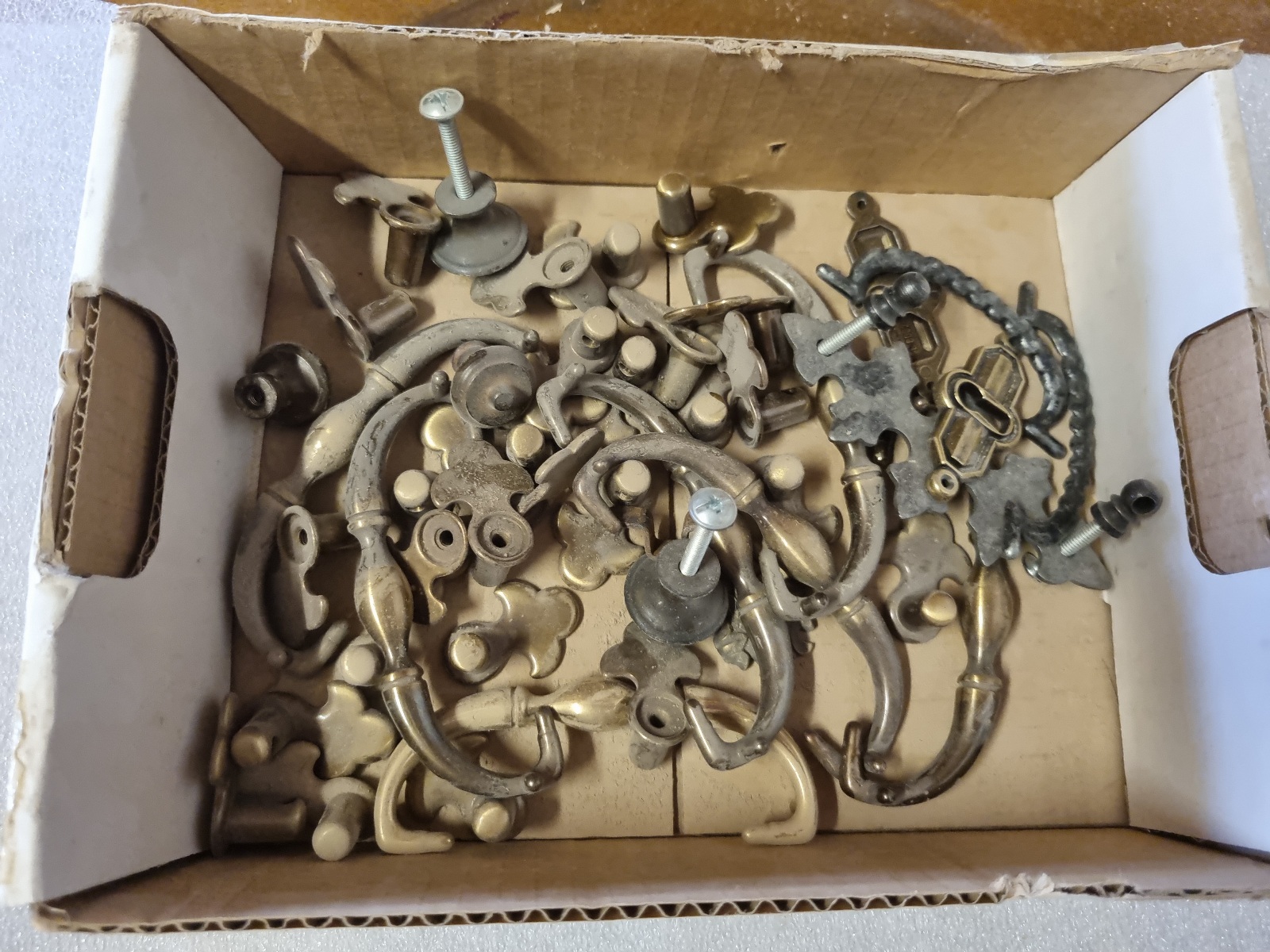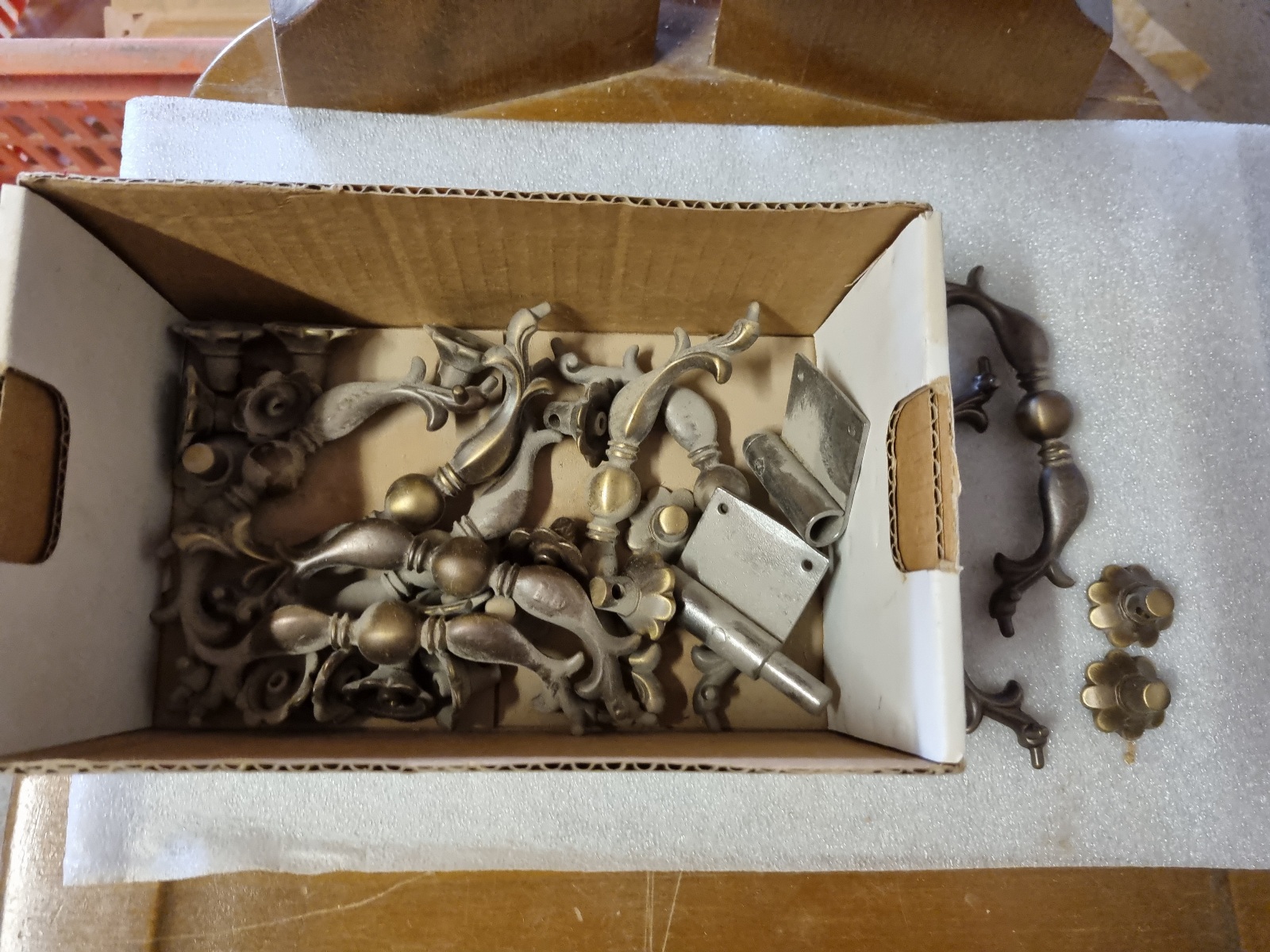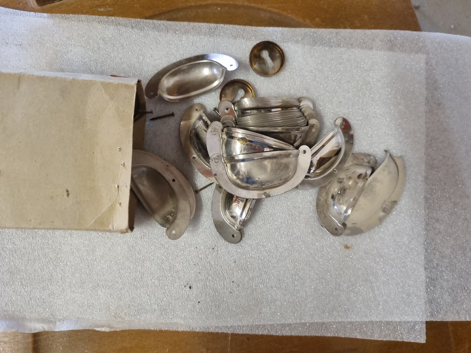 Zubehörteile wie Beschläge, Furnituren, Montagematerial, Ersatzteile, Metallschienen, Holzschienen, Schleifpapier, Vintage Möbelgriffe,