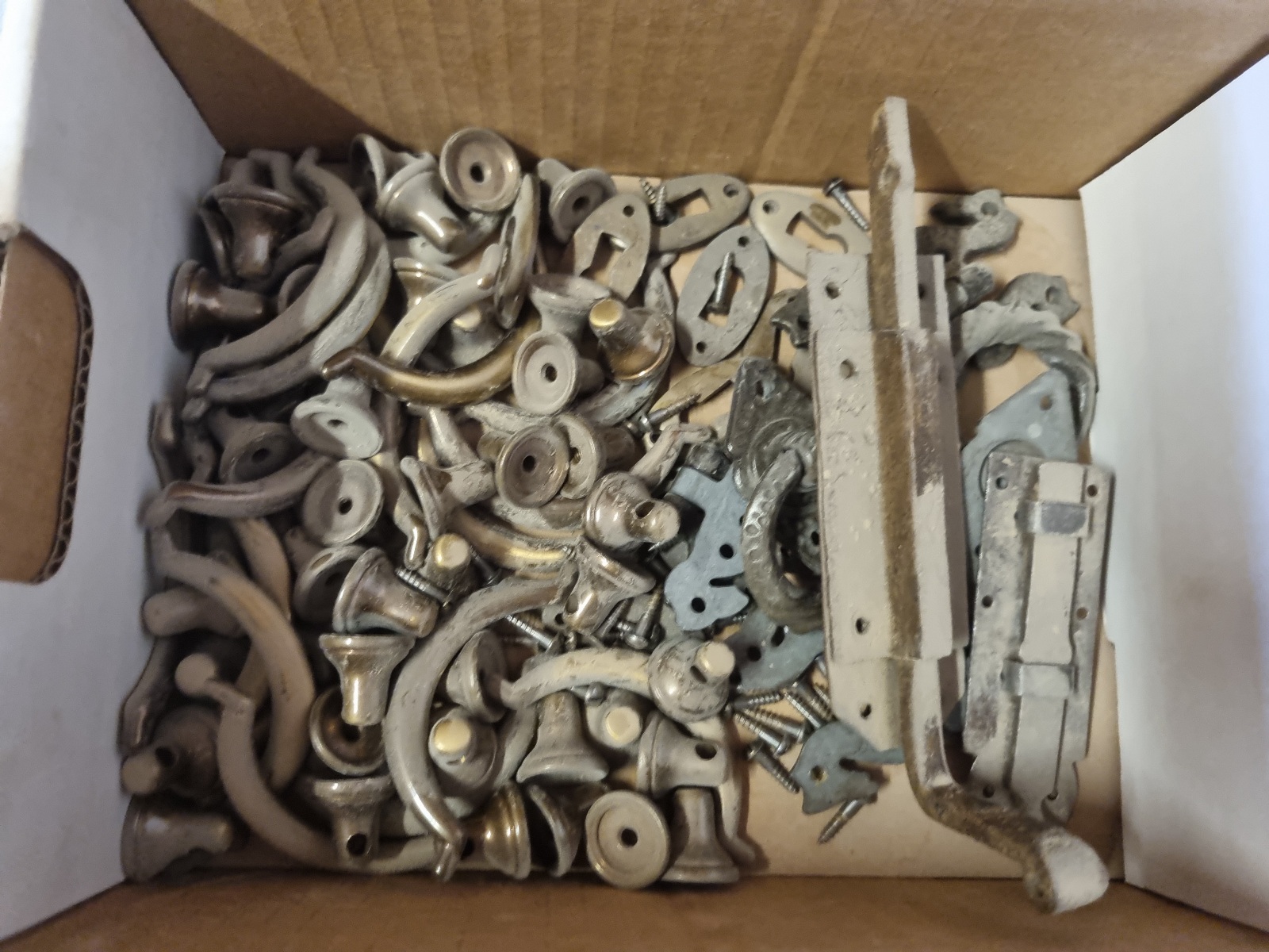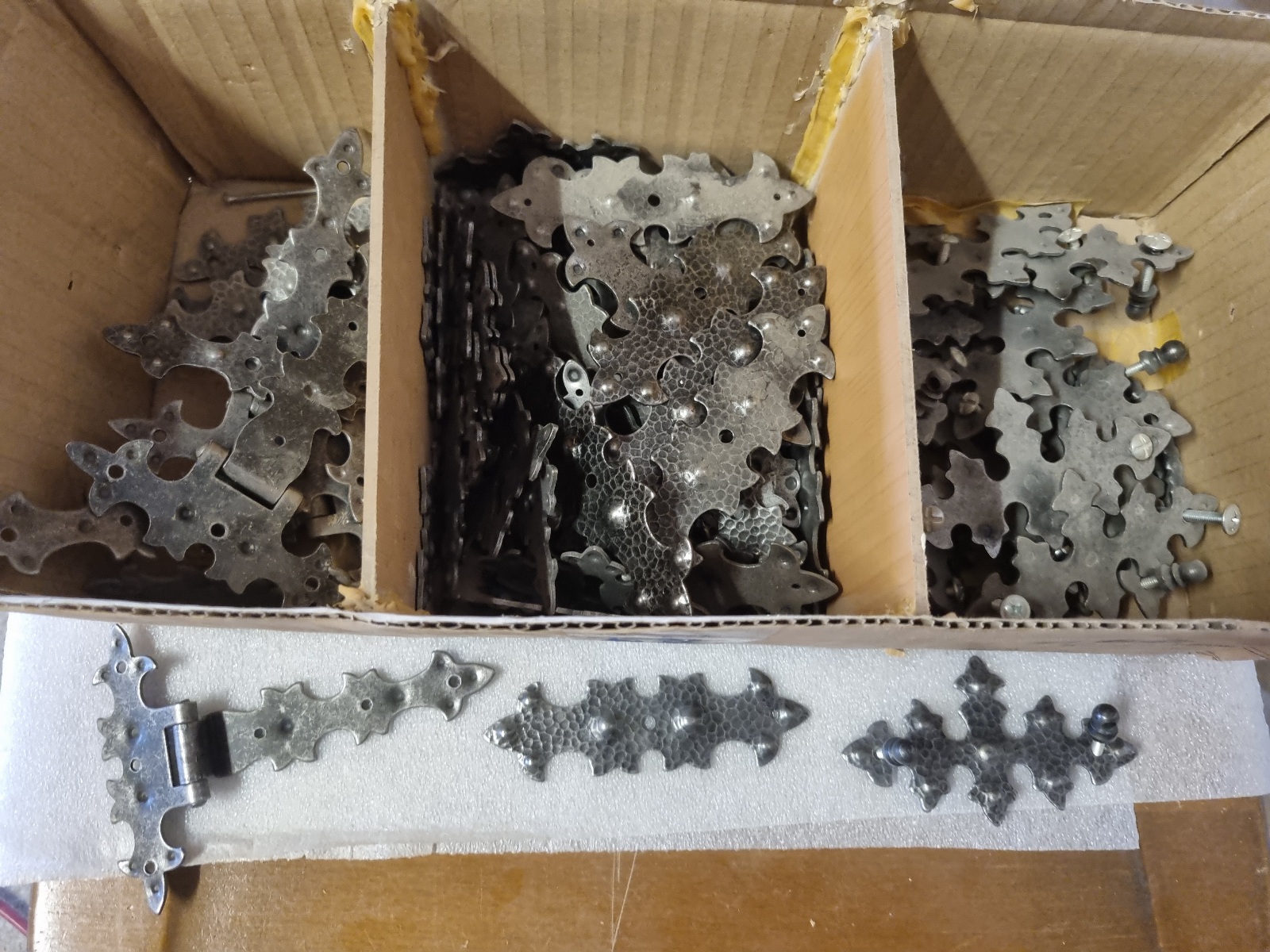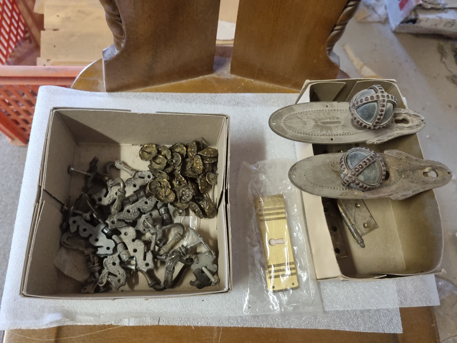 Zubehörteile wie Beschläge, Furnituren, Montagematerial, Ersatzteile, Metallschienen, Holzschienen, Schleifpapier, Vintage Möbelgriffe,