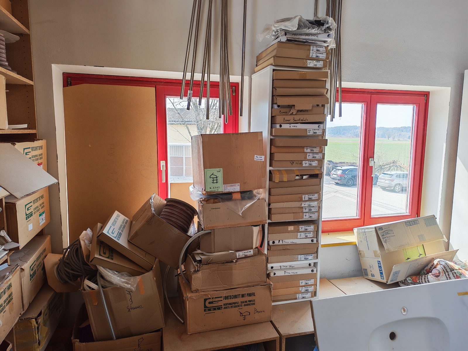 Montage- und Ersatzteile für Küchen, Fenster und Türen. Alu- und Metallschienen, sowie Sockelleisten, Randleisten, Umleimer, Holz- und Dekorplatten, Waschbecken, alte Schlösser und Vintage Möbelbeschläge und Griffe, Werkzeuge, Motoren, Installationsmaterial, Folien- Dämm- und Verpackungsmaterialien, sowie Zirbenholzteile