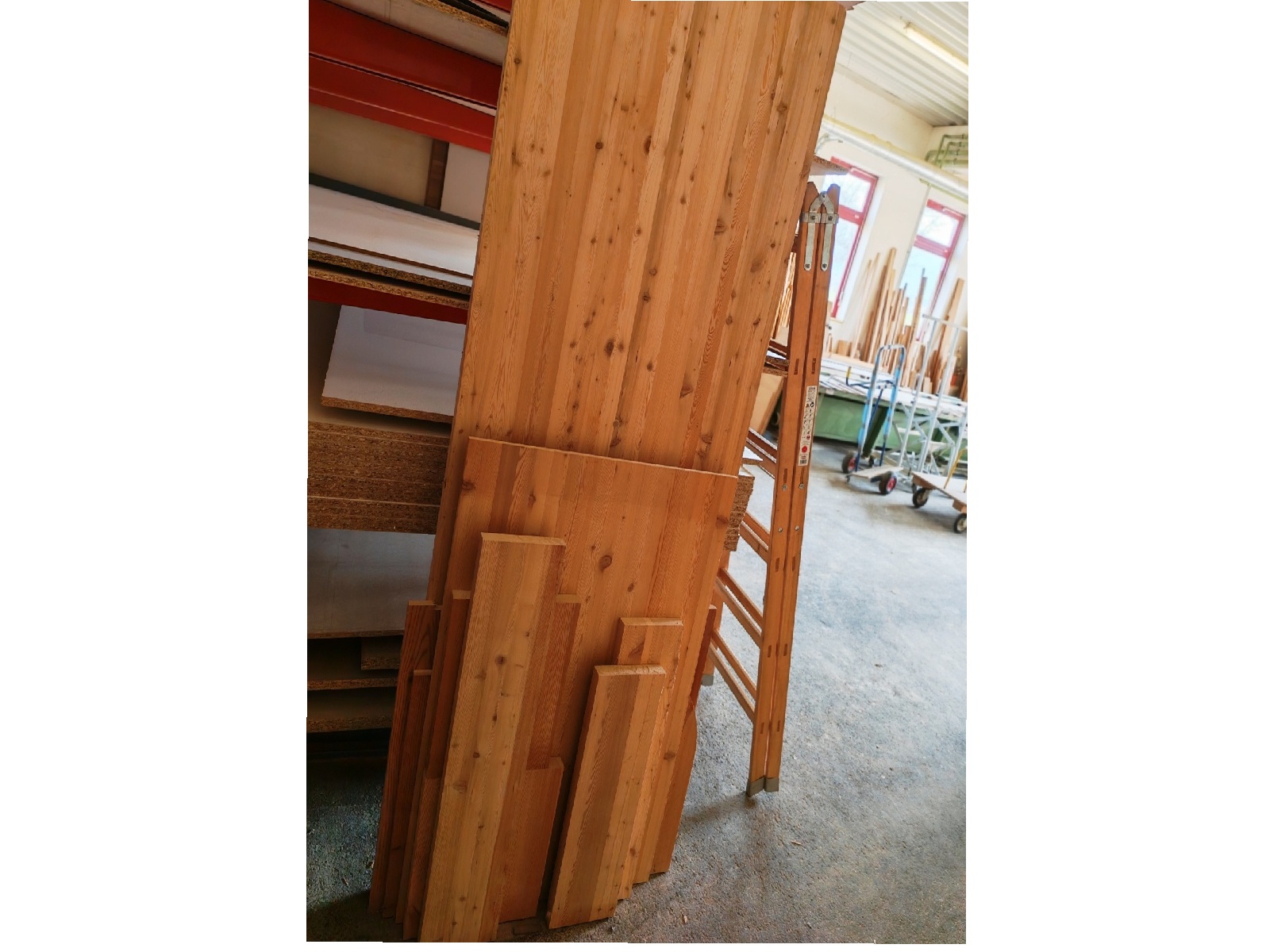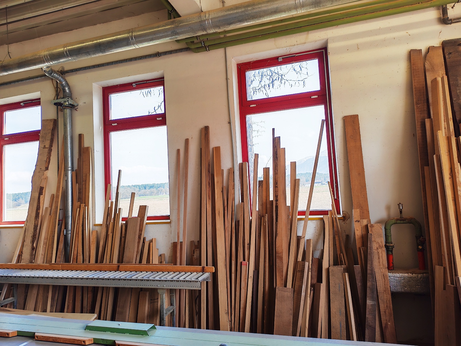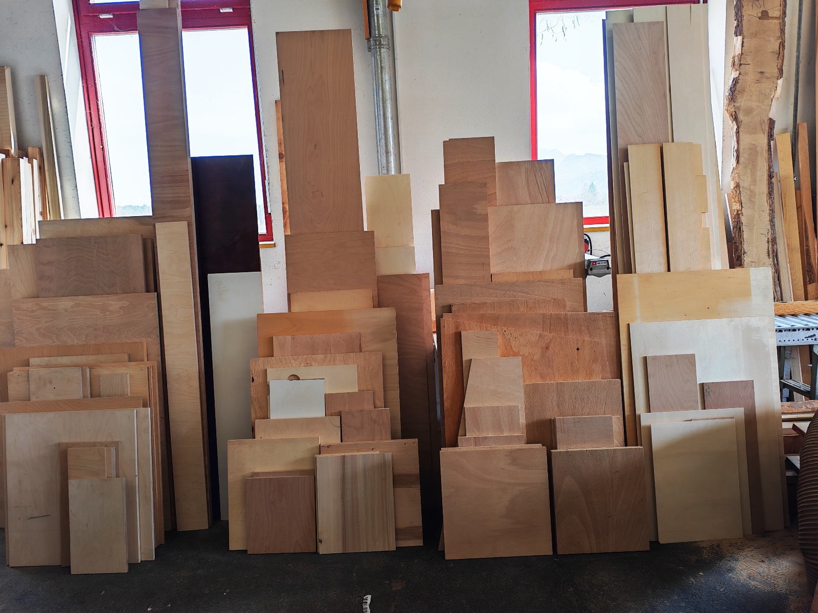 Aus Tischlereiauflösung wegen Betriebsauflösung: Holzrohstoffe in Form von Brettern, Platten, Pfosten und Kanthölzern, hochwertige Rohhölzer, Leimhölzer, Furniere, Kantenumleimer, Tischlermöbel und diverse andere Möbel, Türen und Fenster, uvm...