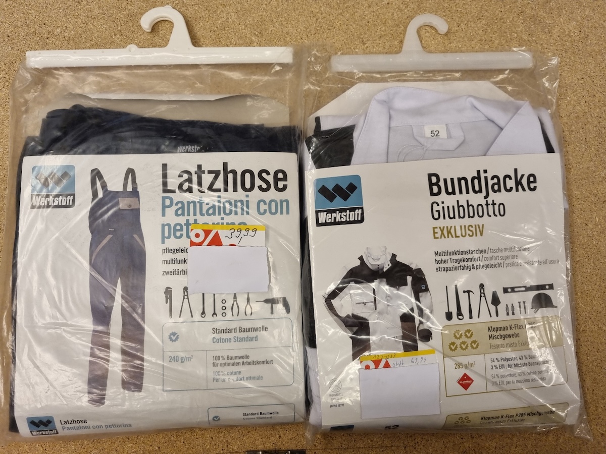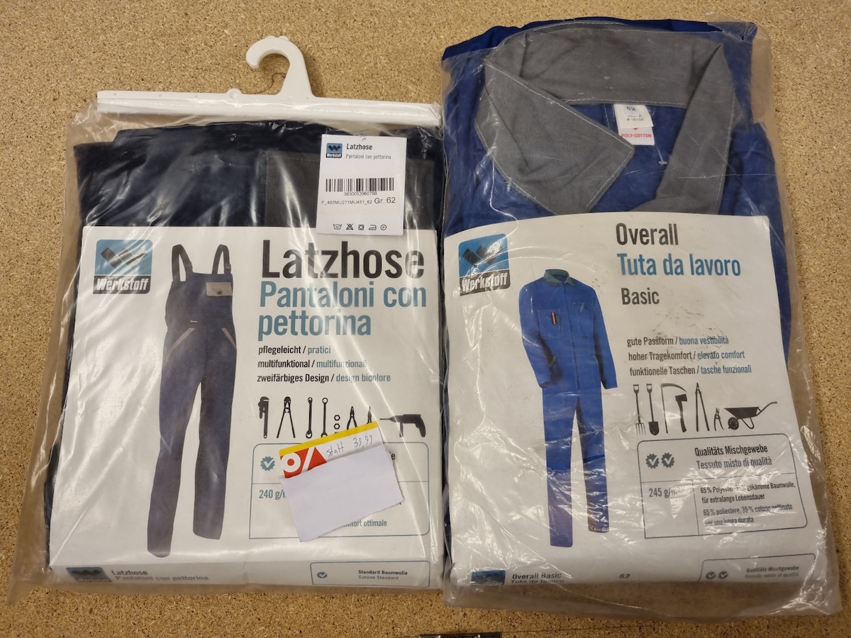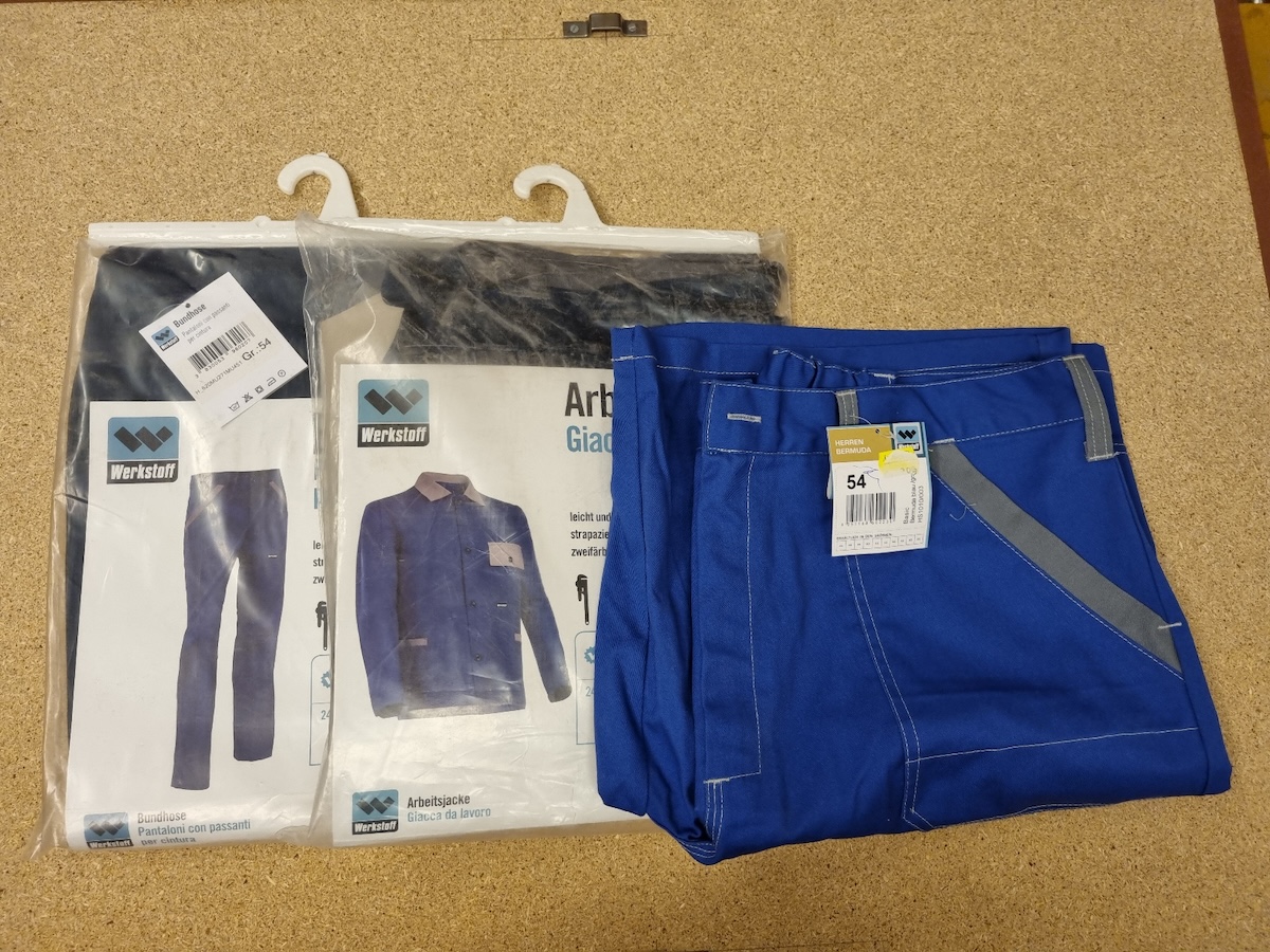 Jacken, Latzhosen, Bermudas und Overalls der Marken Werkstoff,