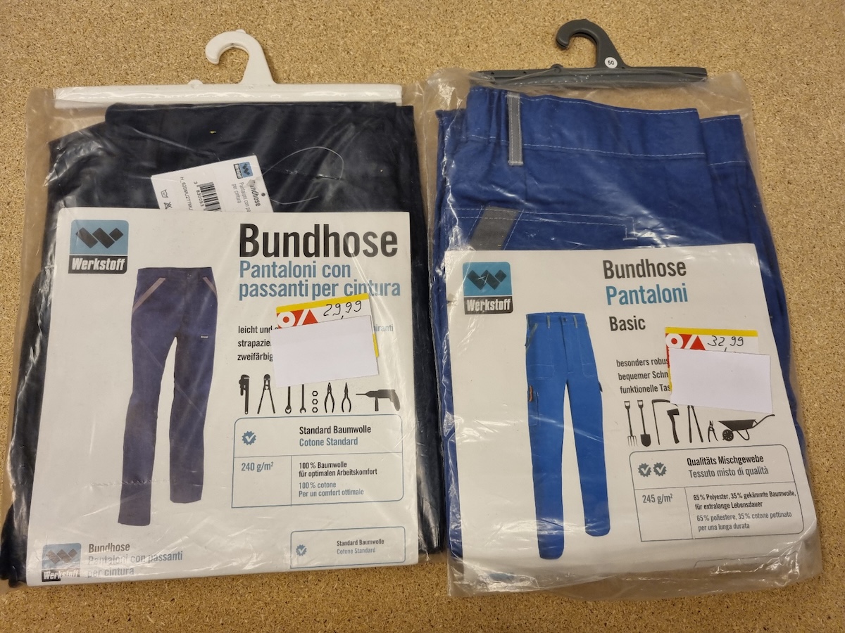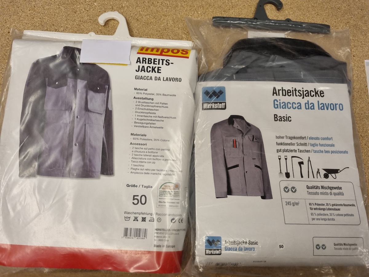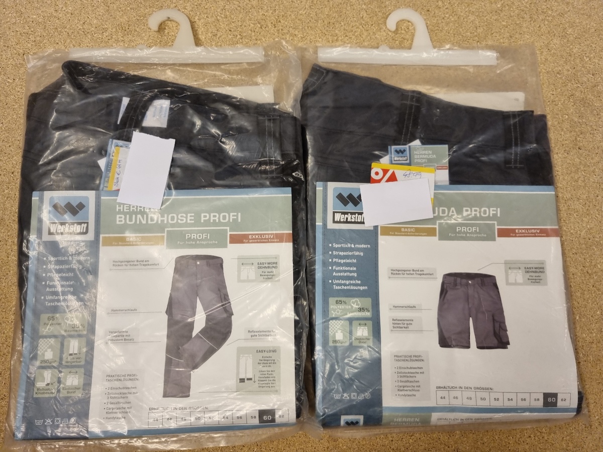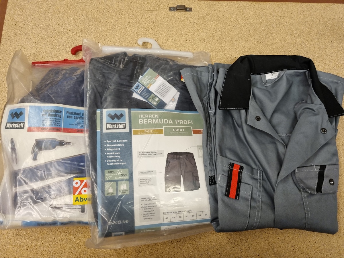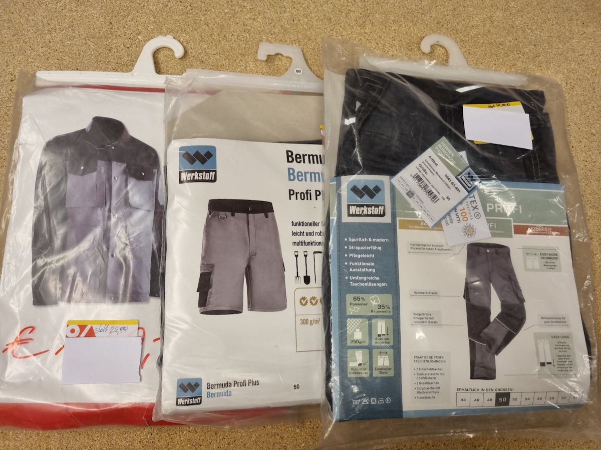 Jacken, Latzhosen, Bermudas und Overalls der Marken Werkstoff,