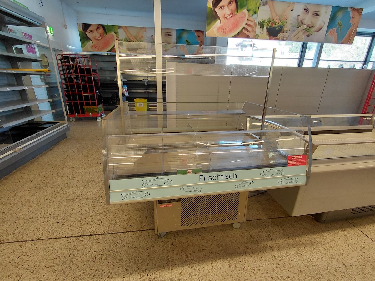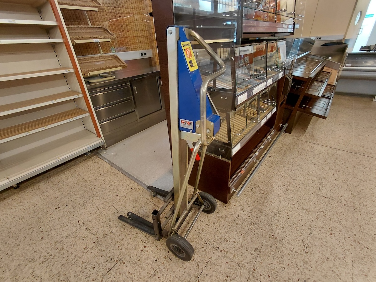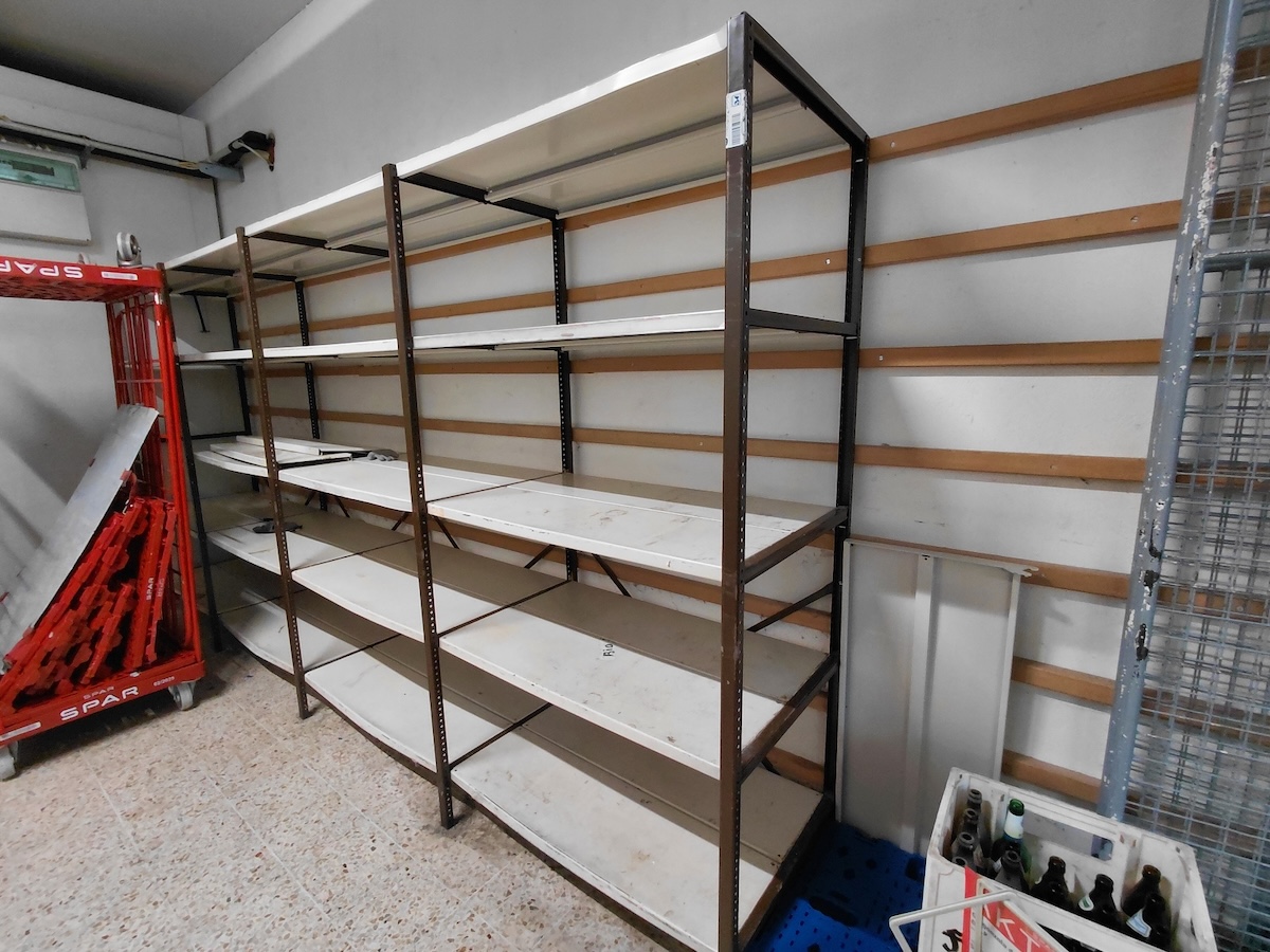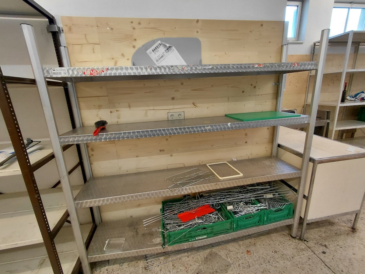 Regale und Regalblöcke, Einkaufswägen, Gastromöbel wie Unterschränke,