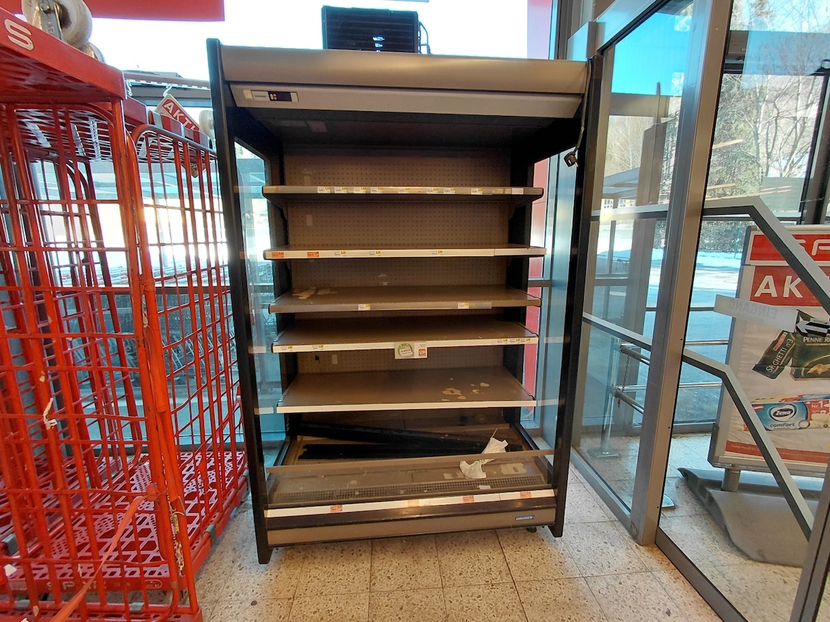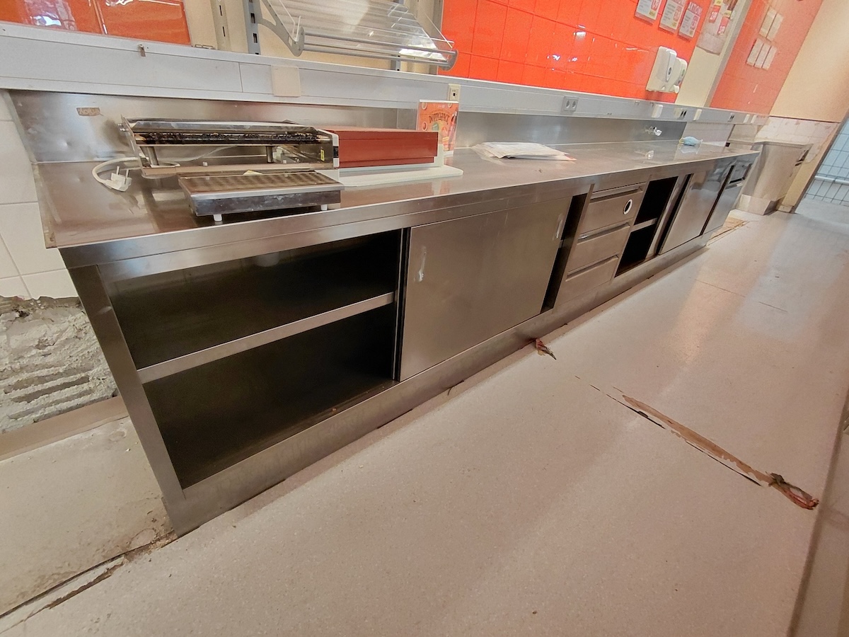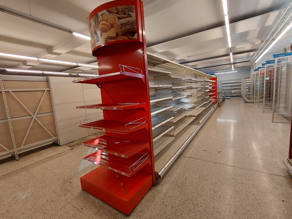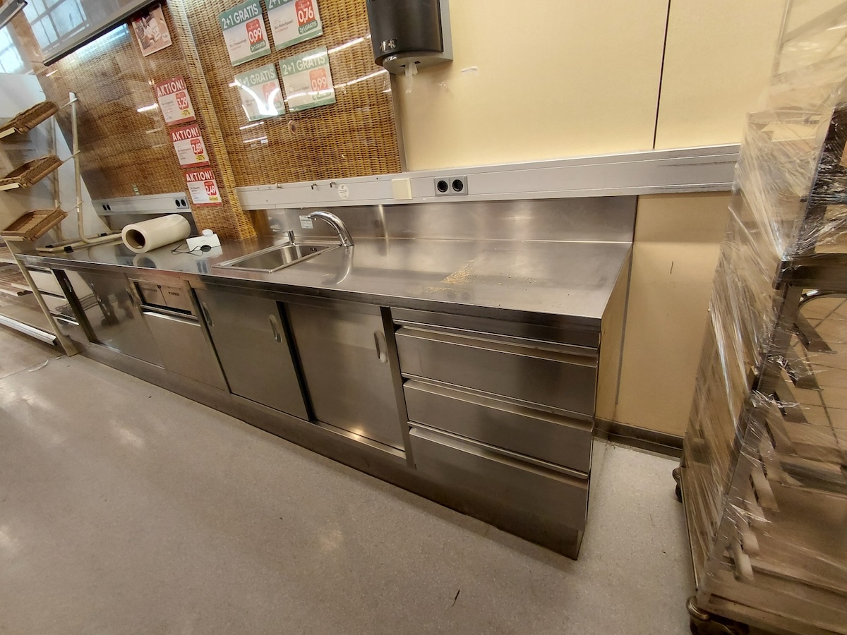 Regale und Regalblöcke, Einkaufswägen, Gastromöbel wie Unterschränke,