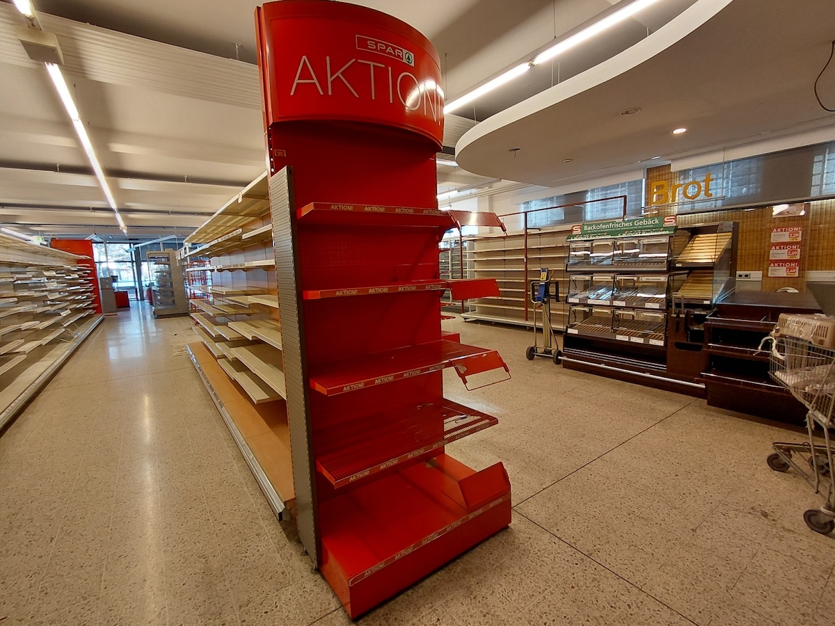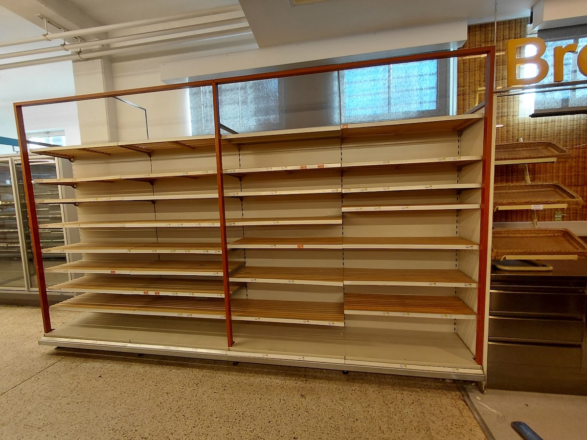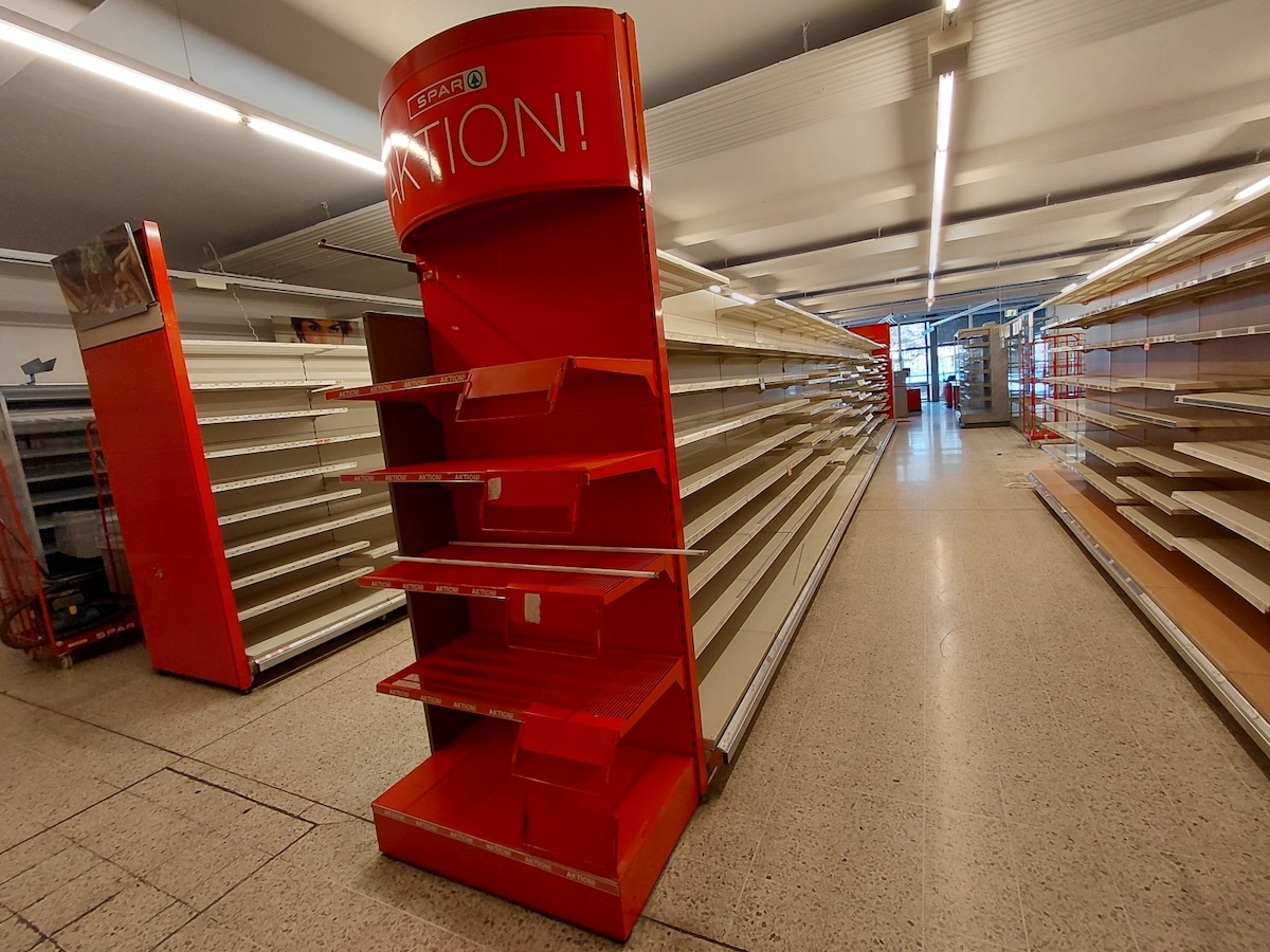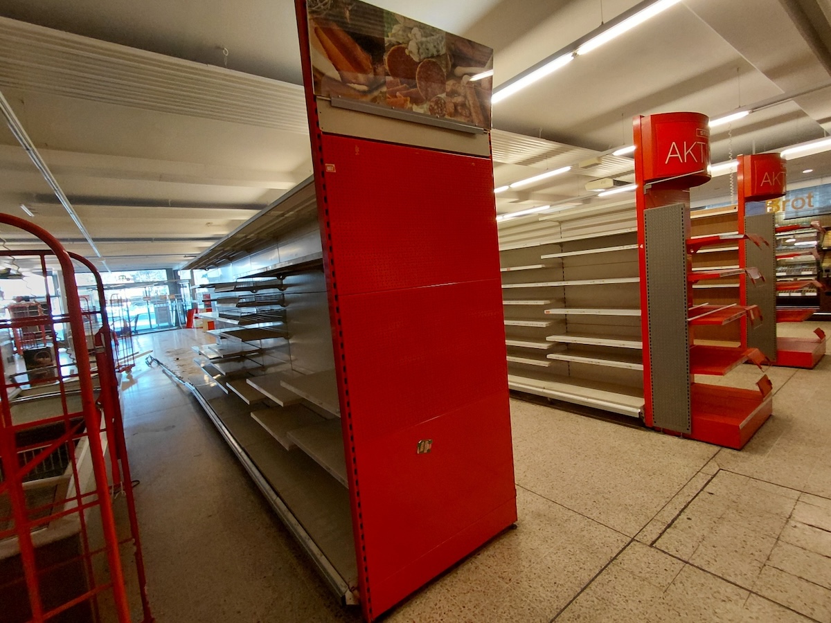 Regale und Regalblöcke, Einkaufswägen, Gastromöbel wie Unterschränke,