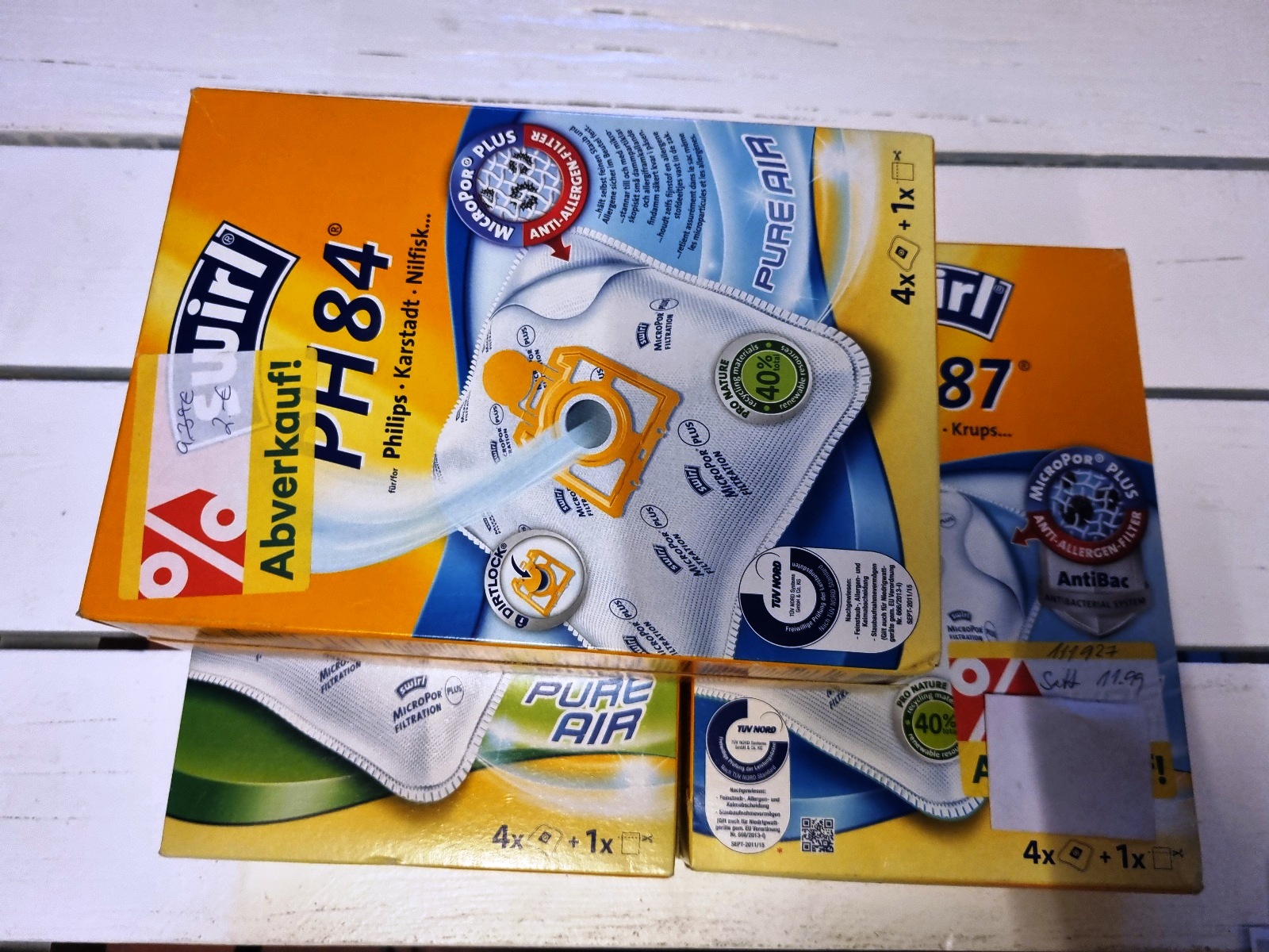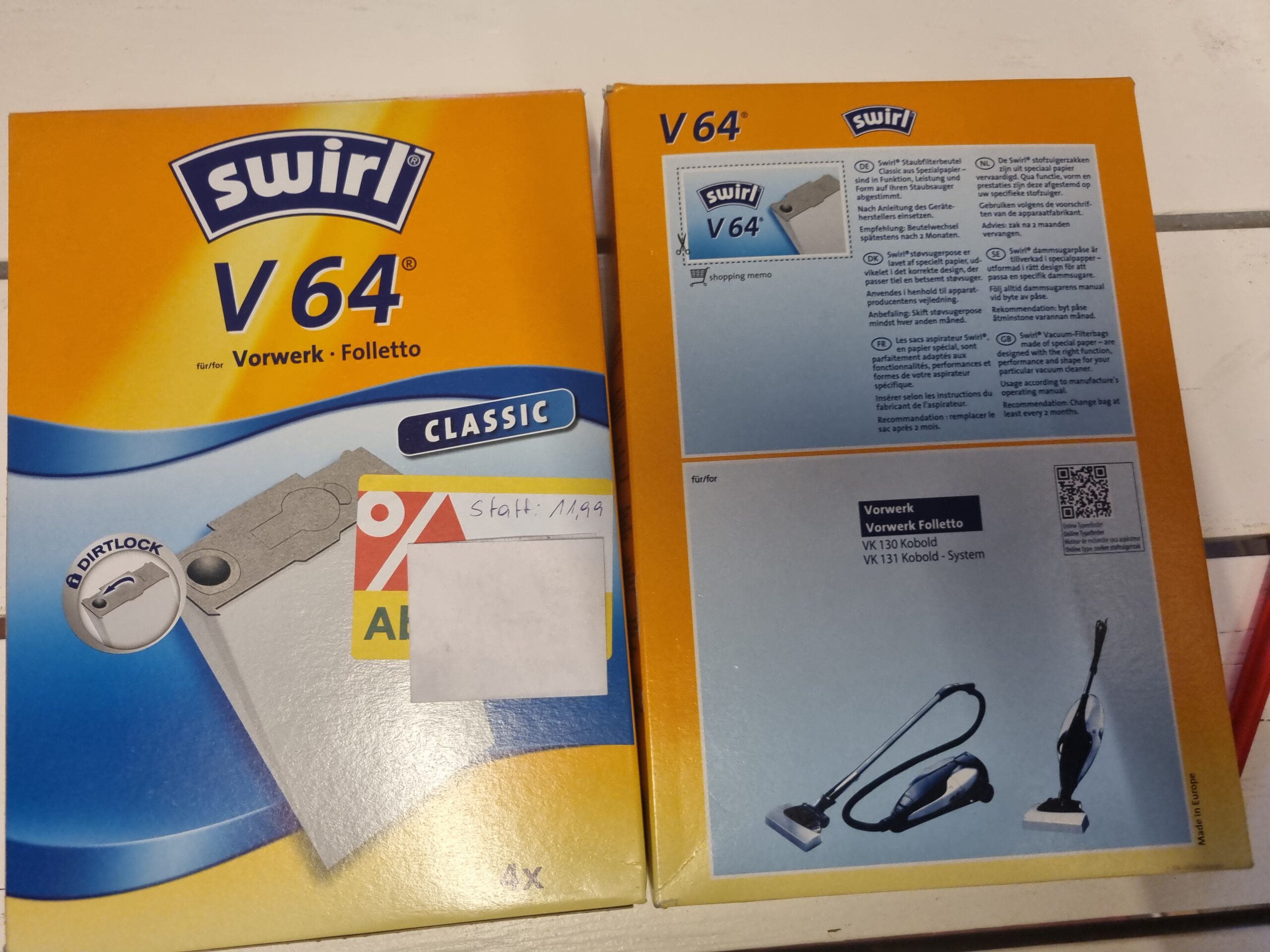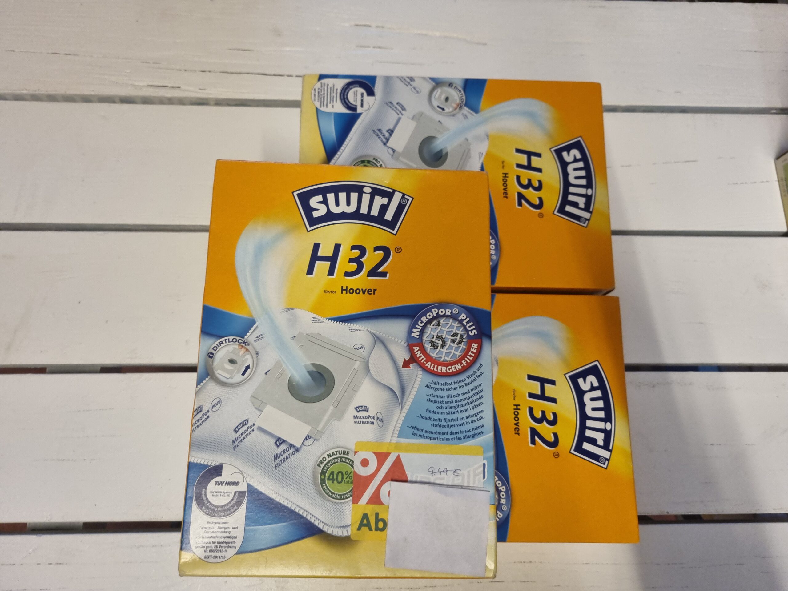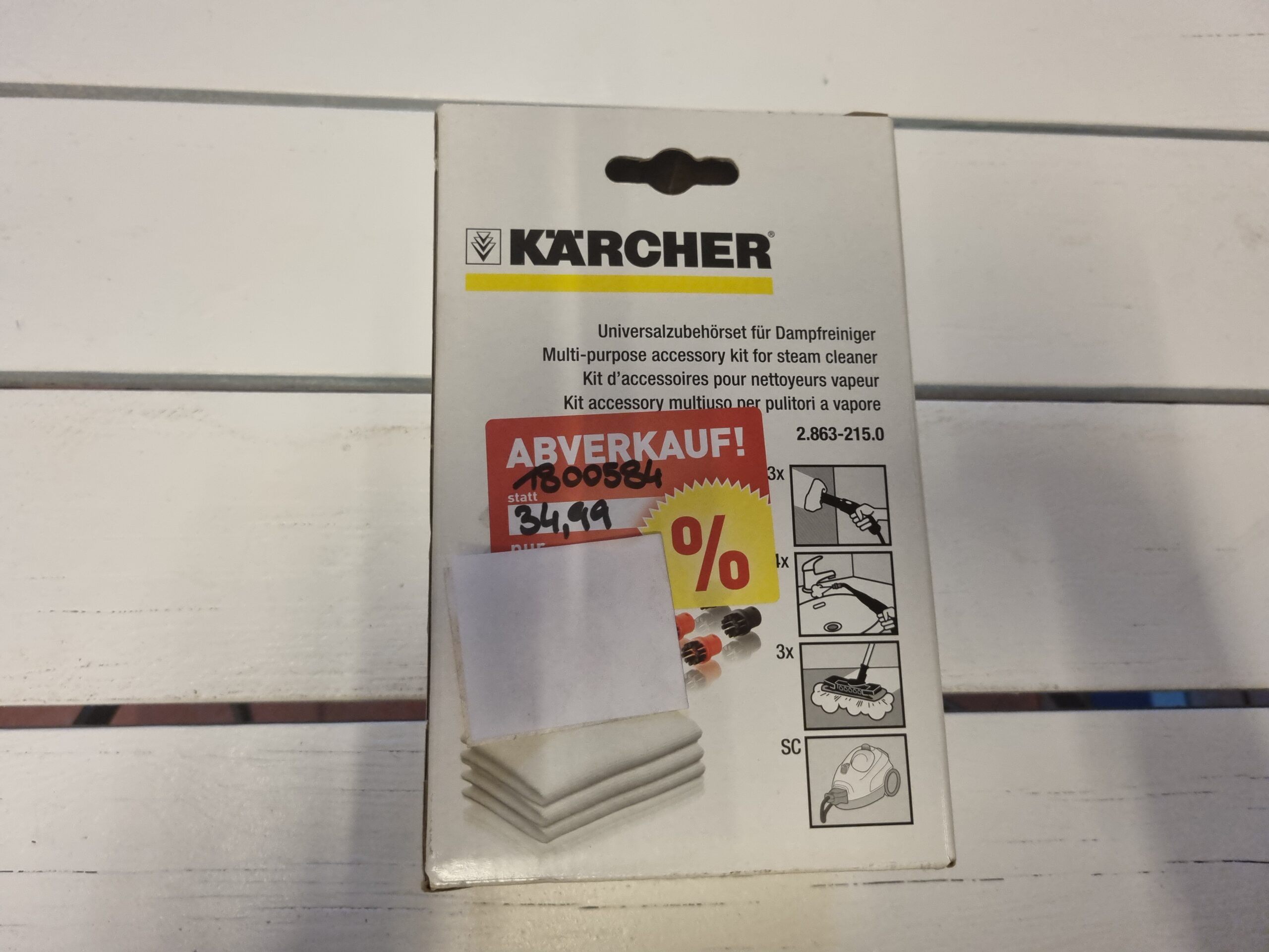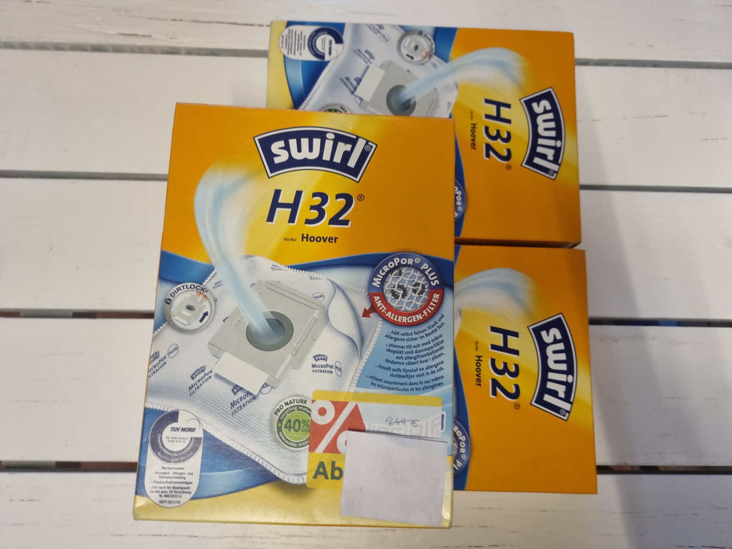 Reinigungszubehör und Filtertüten der Marken Kärcher, Vileda, Leifhert und Swirl.
