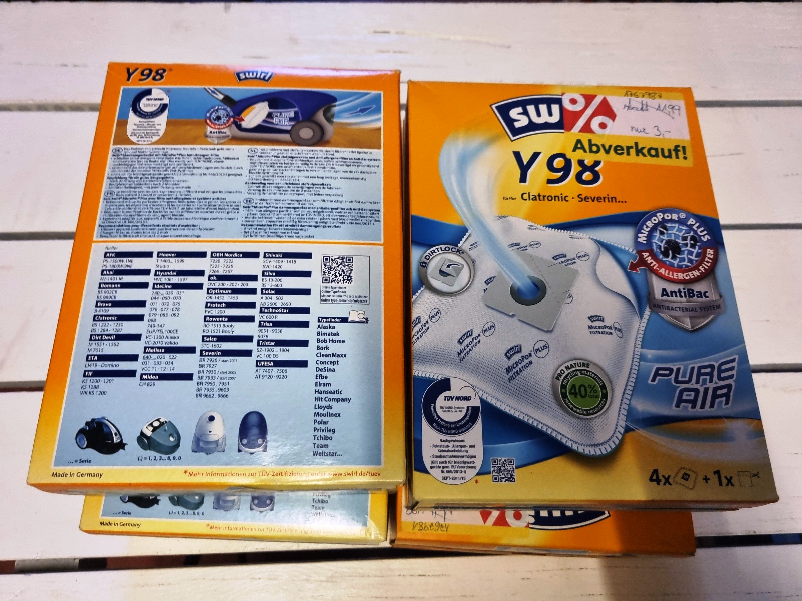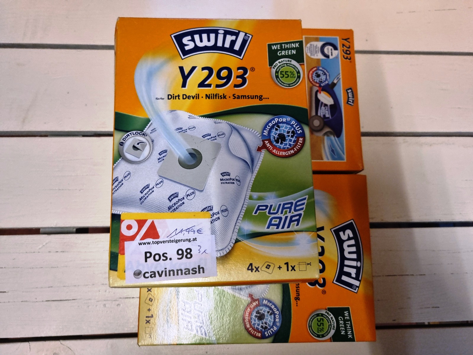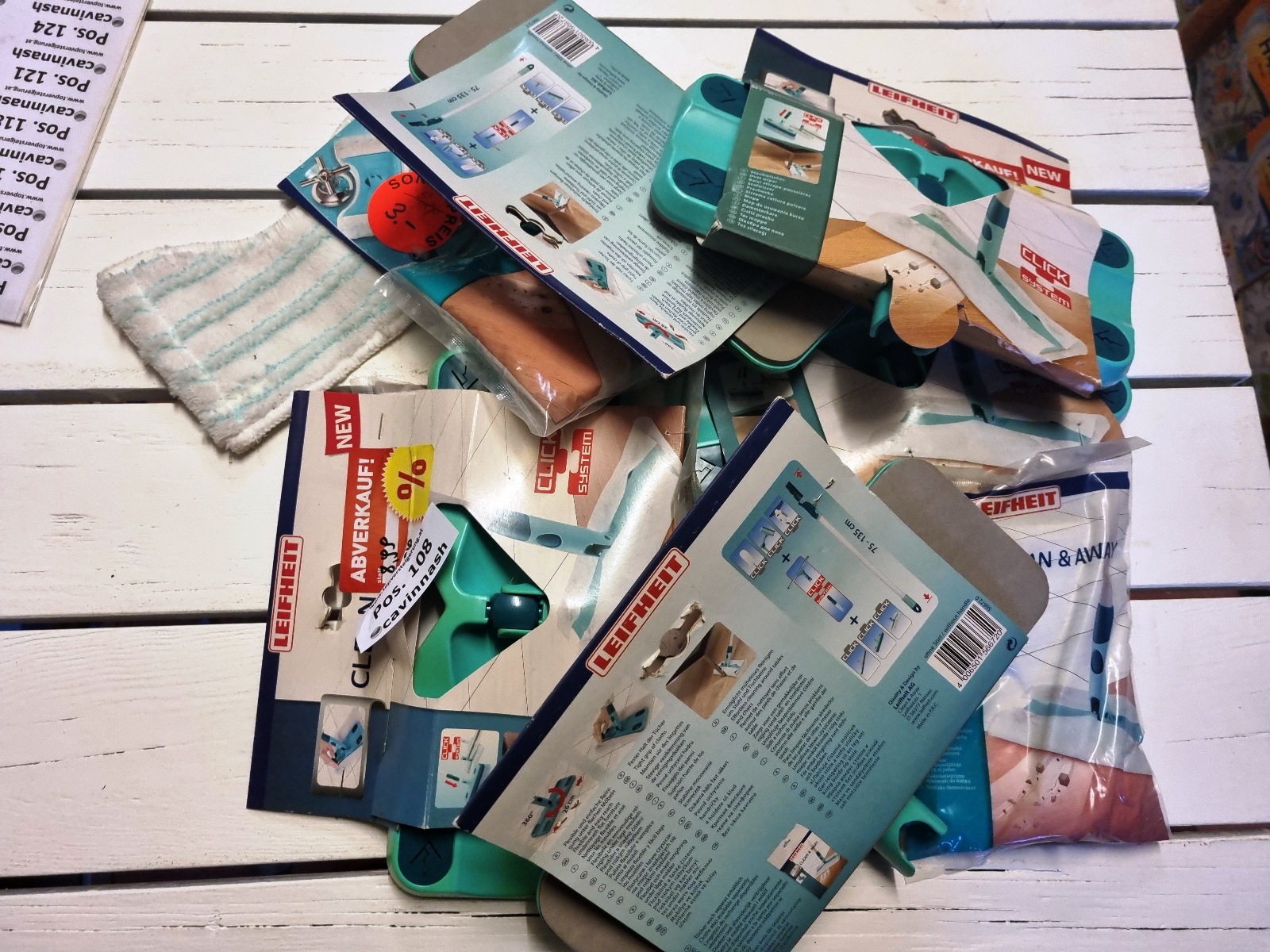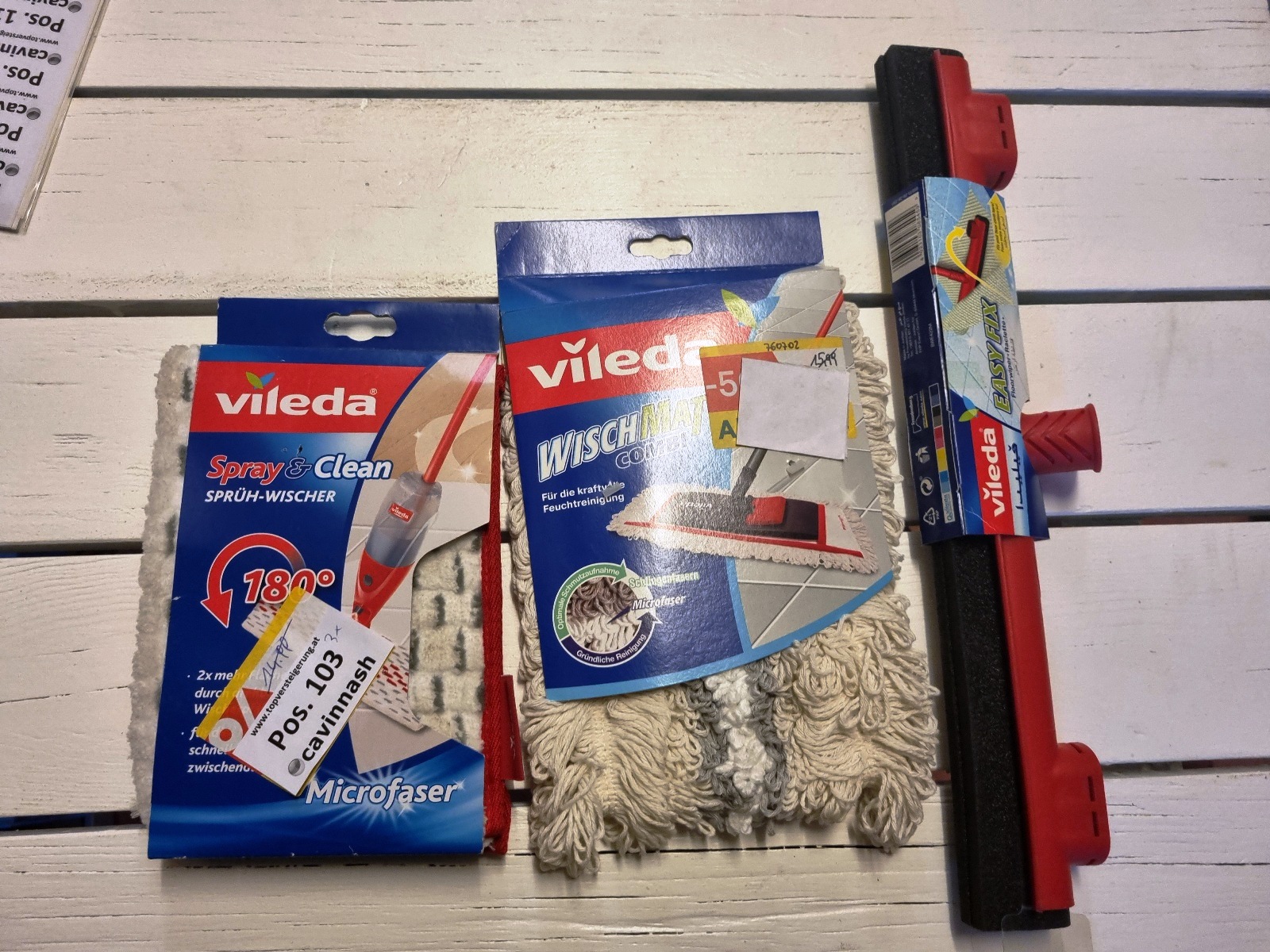 Reinigungszubehör und Filtertüten der Marken Kärcher, Vileda, Leifhert und Swirl.